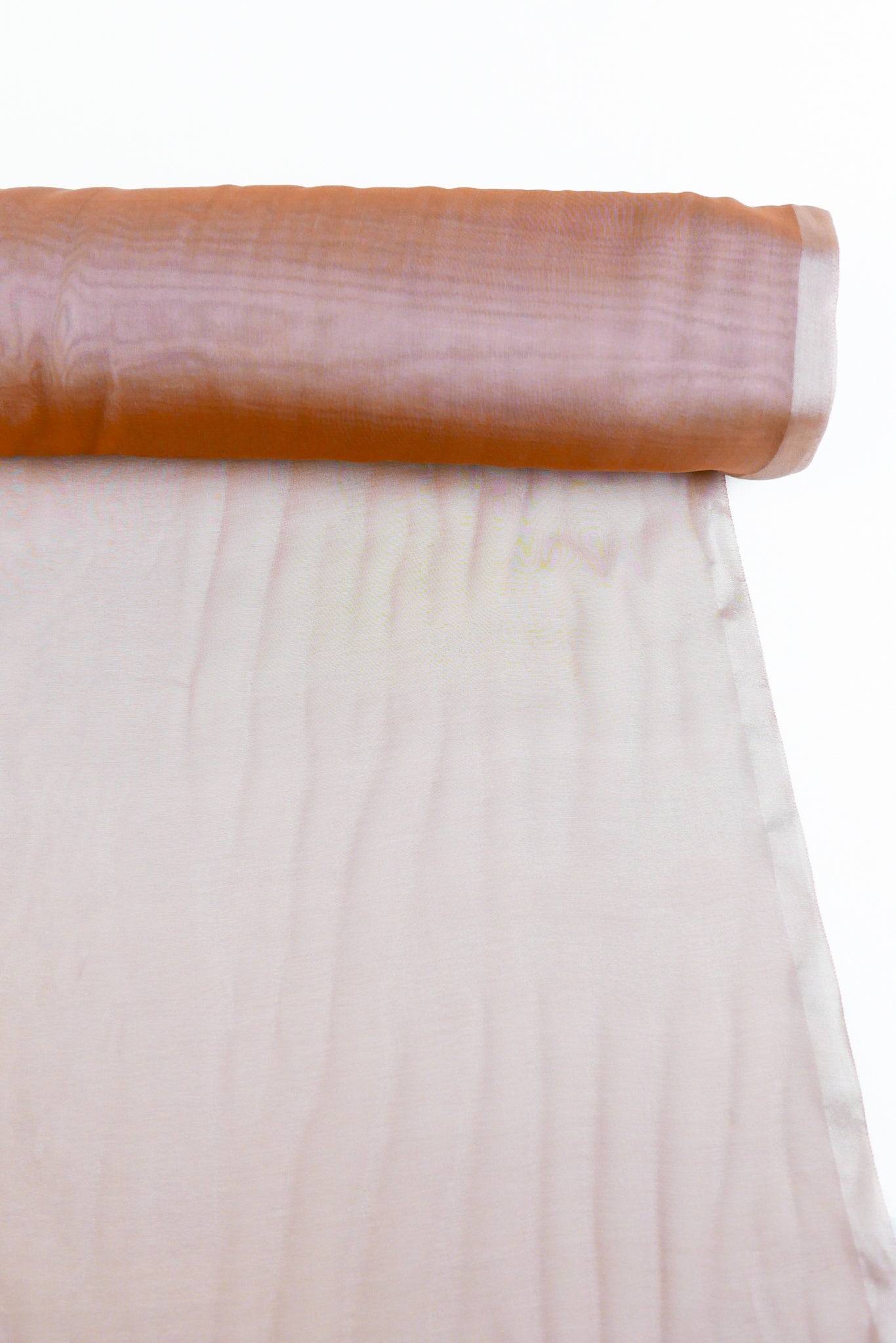 This elegant silk chiffon is iridescent, with interwoven shades of dusky lilac and burnt orange creating a mesmerising finish. Lightweight and super fine, it is luxuriously delicate. Floaty and sheer, it's the perfect blouse weight, or line your summer skirts and dresses for a super luxe feel.