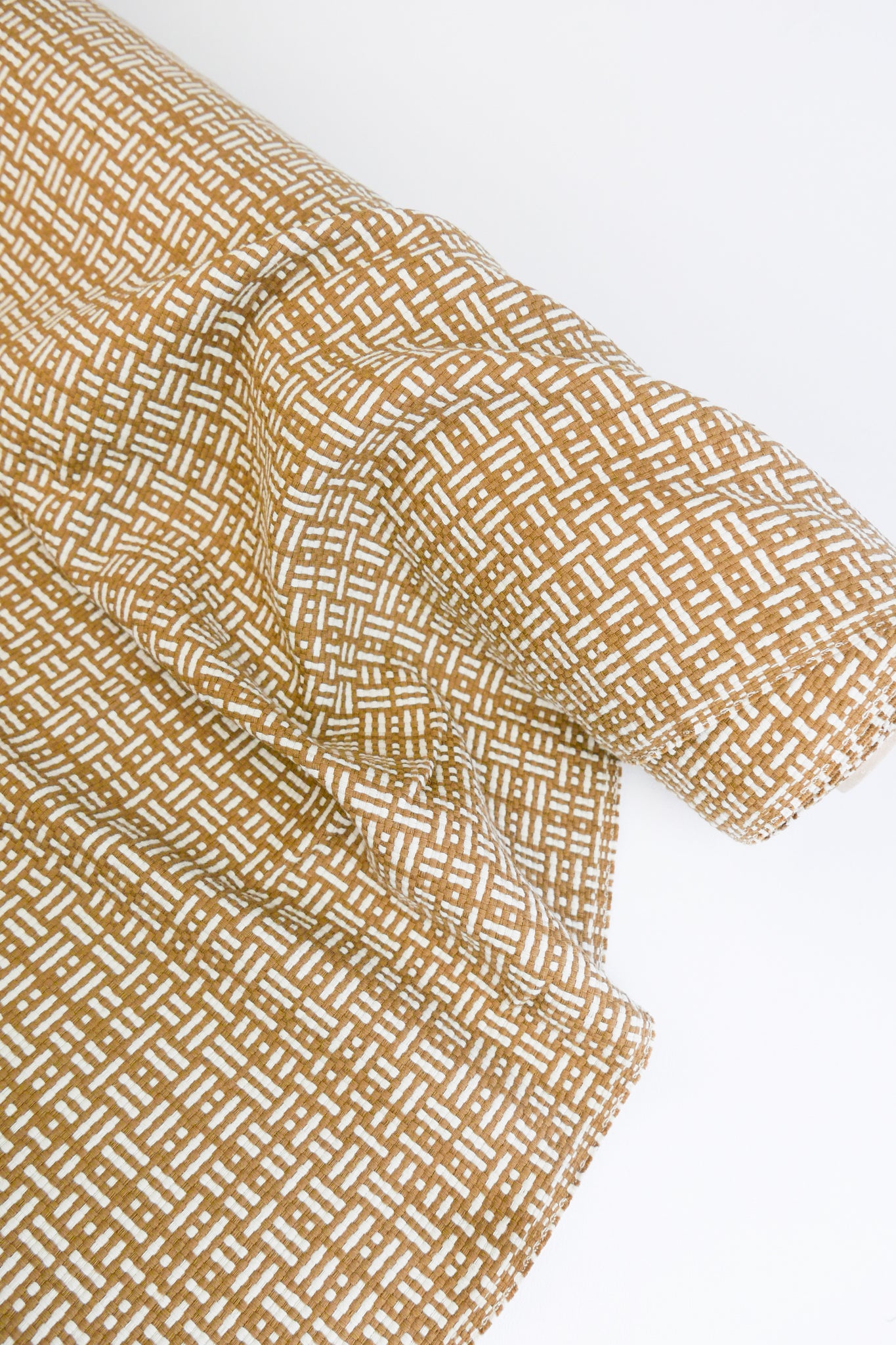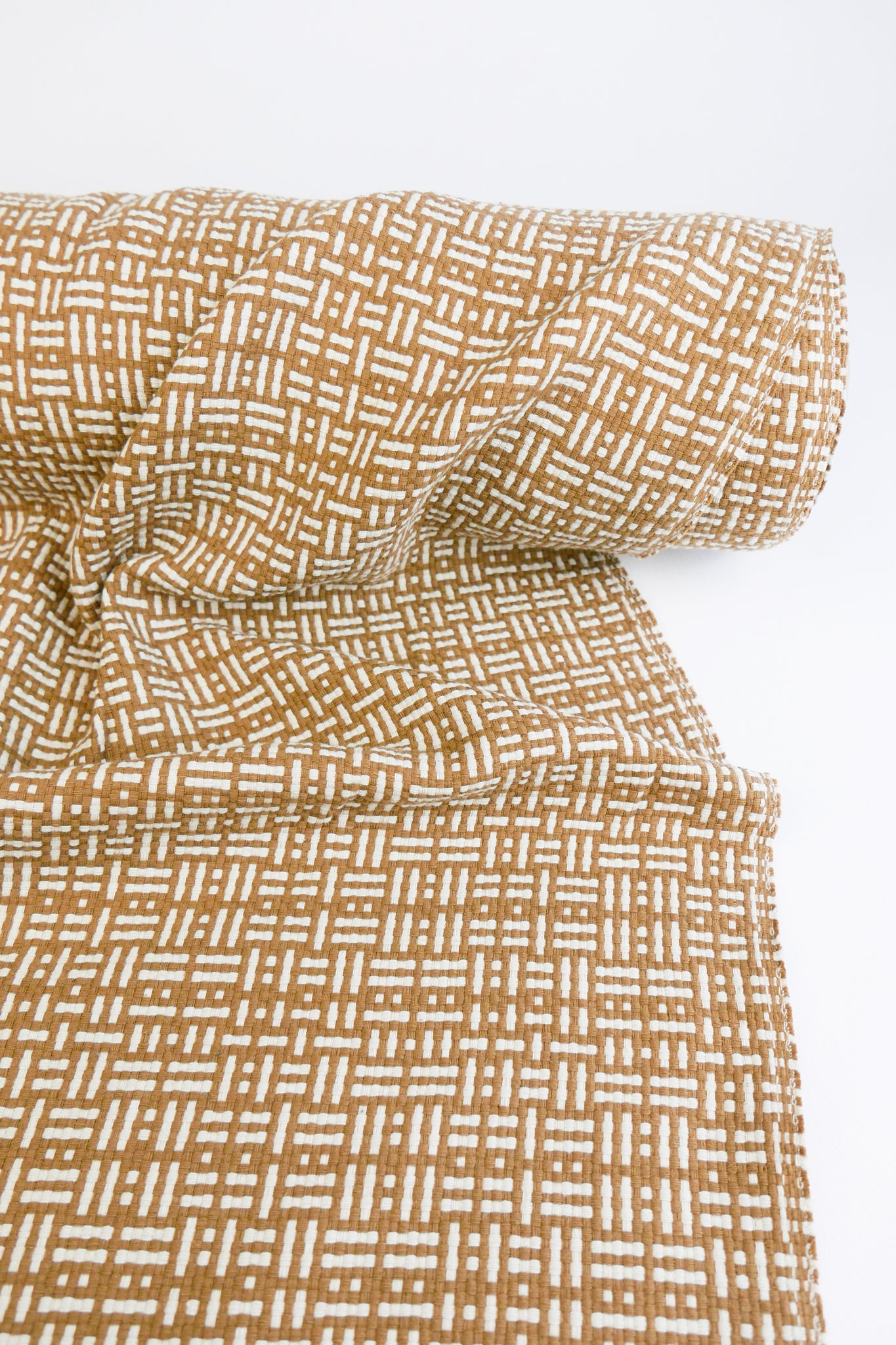 Bourdeaux is a vibrant, double-faced jacquard boucle with a beautiful weave in nutmeg and off-white. Heavyweight and structured, this jacquard is perfect for showstopping coats, or a matching jacket and skirt set à la Clueless. Also suitable for homeware.