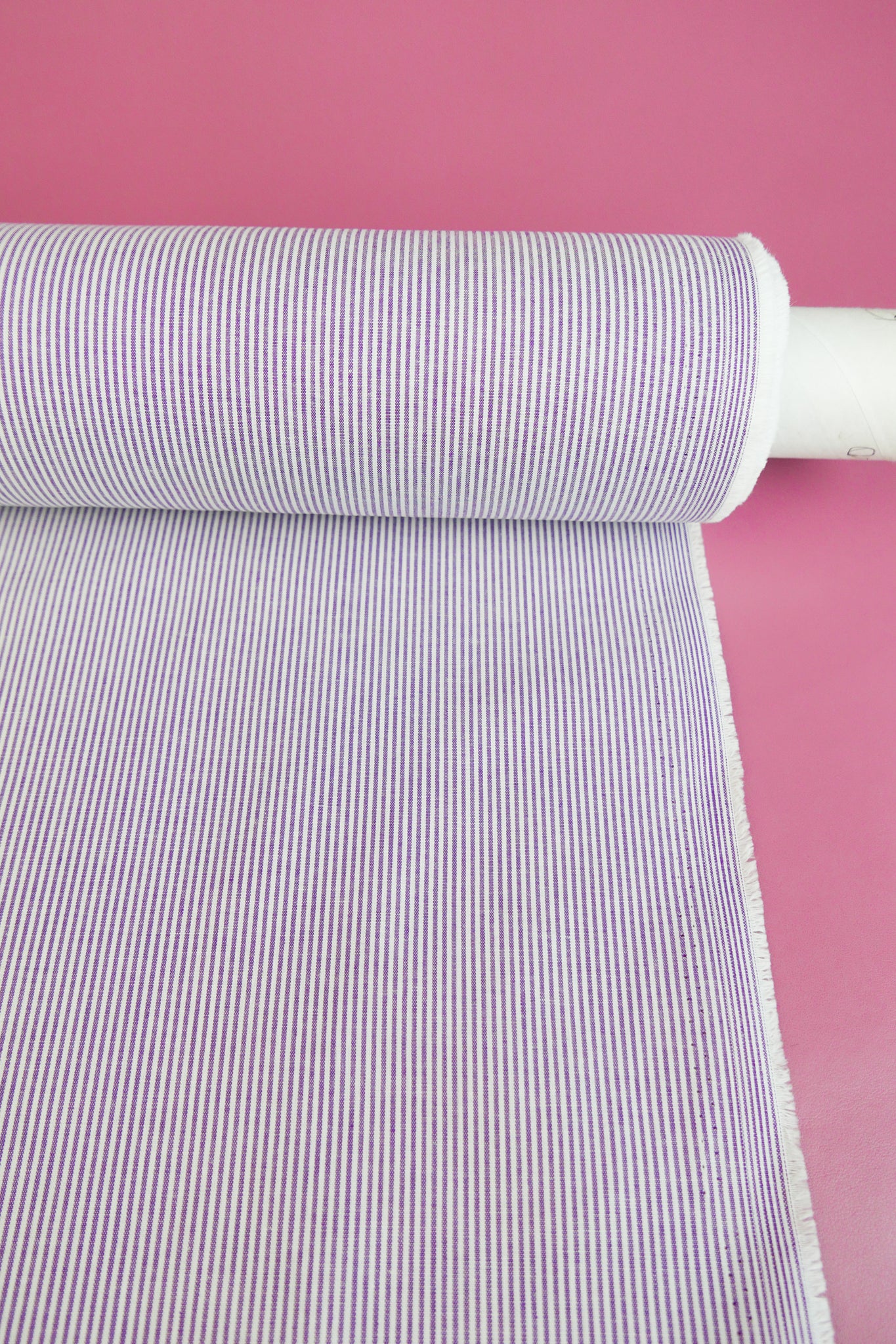 Aidan is a pure cotton shirting coming in a classic yarn-dyed stripe design in grape on an off-white cloth. Lightweight and completely opaque, Aidan holds good structure and will make into beautiful silhouettes with gathers, puffs and volume. This yarn-dyed cotton would make a beautiful shirt, summer-weight pant, skirt or dress.