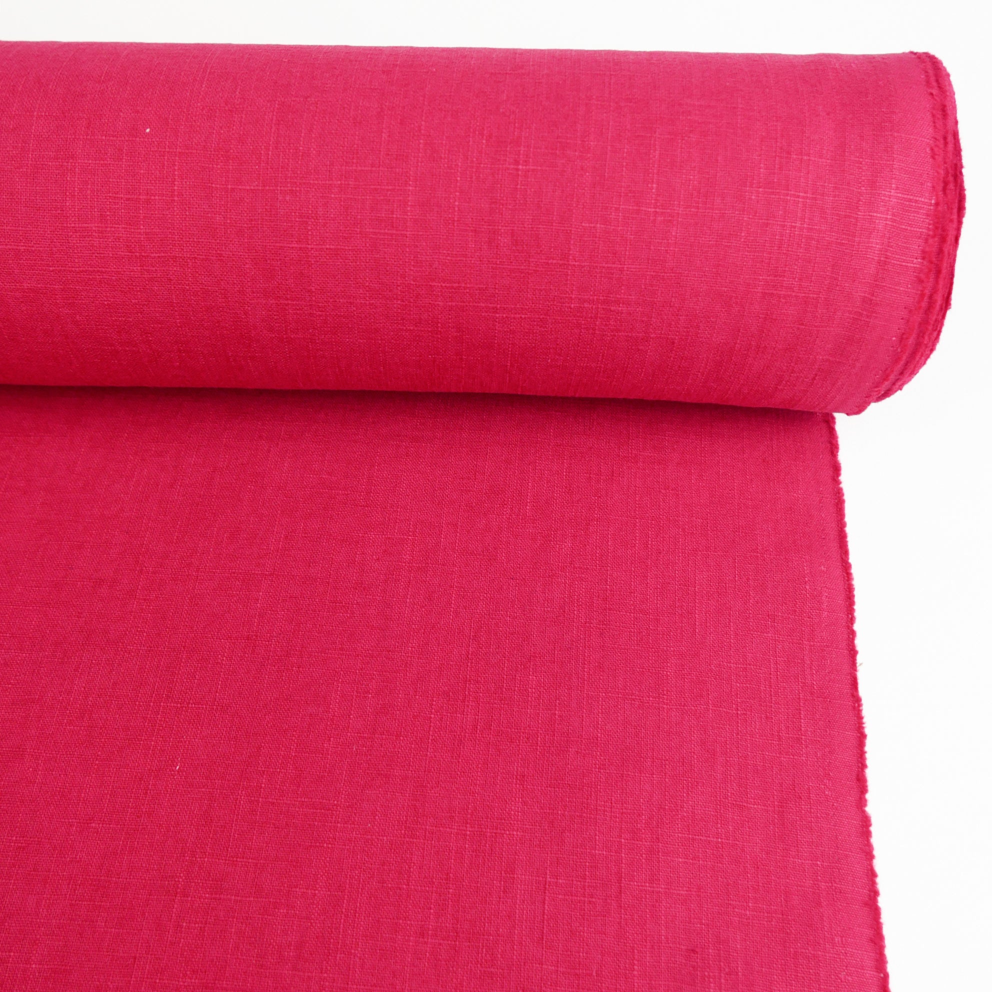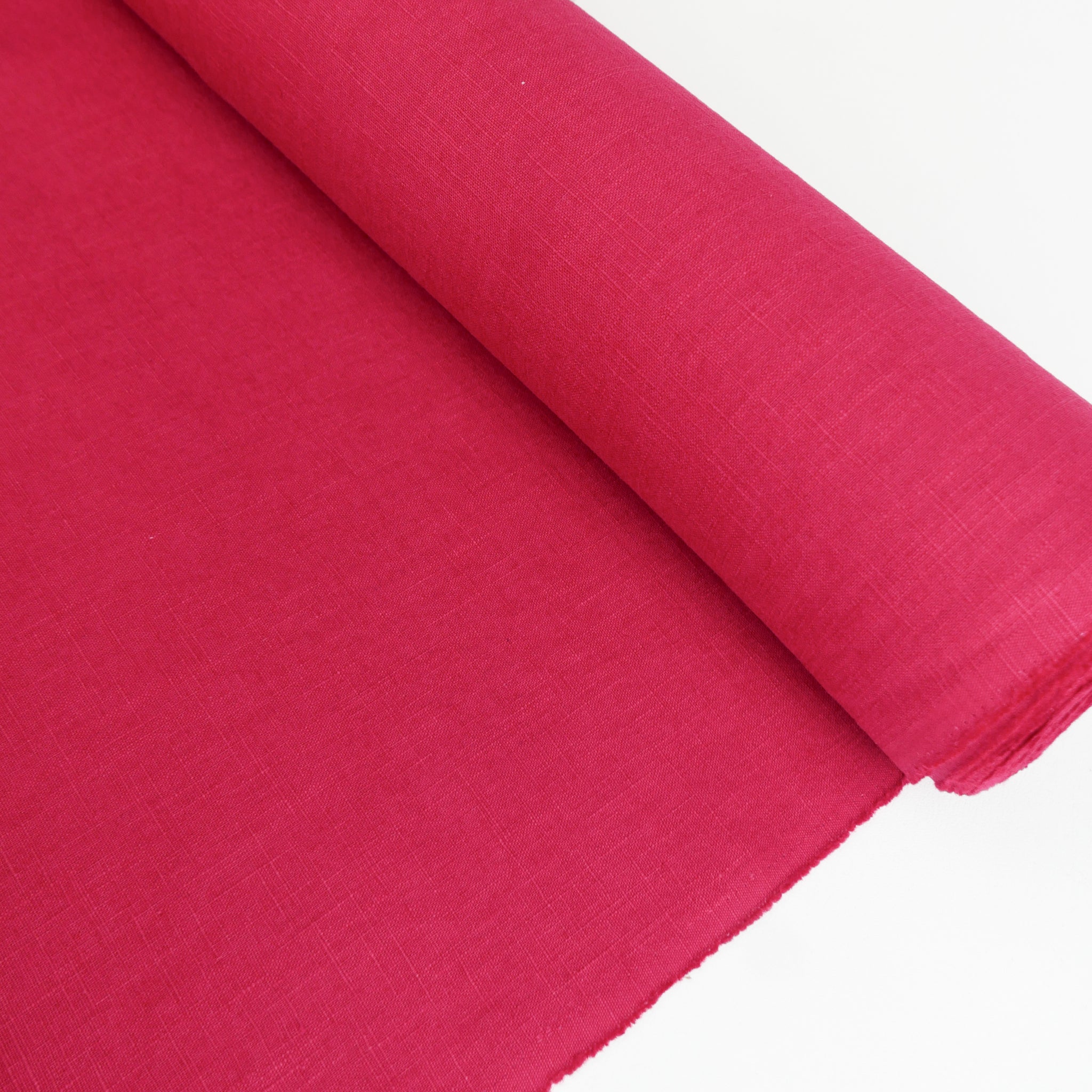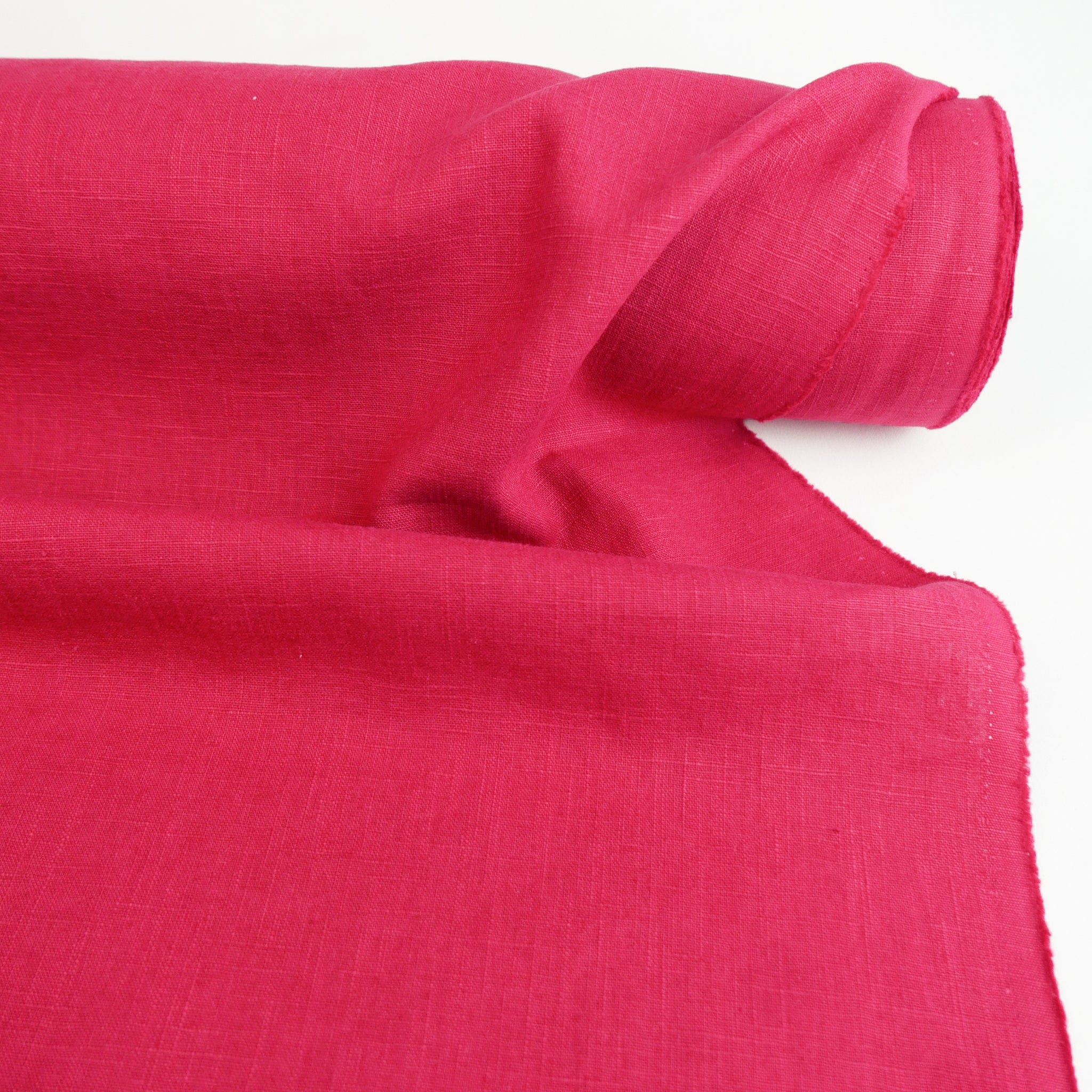 Jill is your new favourite heavyweight linen. With a crosshatch weave, it's available in raspberry. Jill is really special as the yarn is dyed first and then woven together ensuring deeper, richer colours complete with a lovely washer finish. A delicious wide width with visible grain and slub, it's completely opaque and holds plenty of structure. It's waiting to be made into a fabulous linen suit, dress or everyday wide-leg pant. Also suitable for homewares.