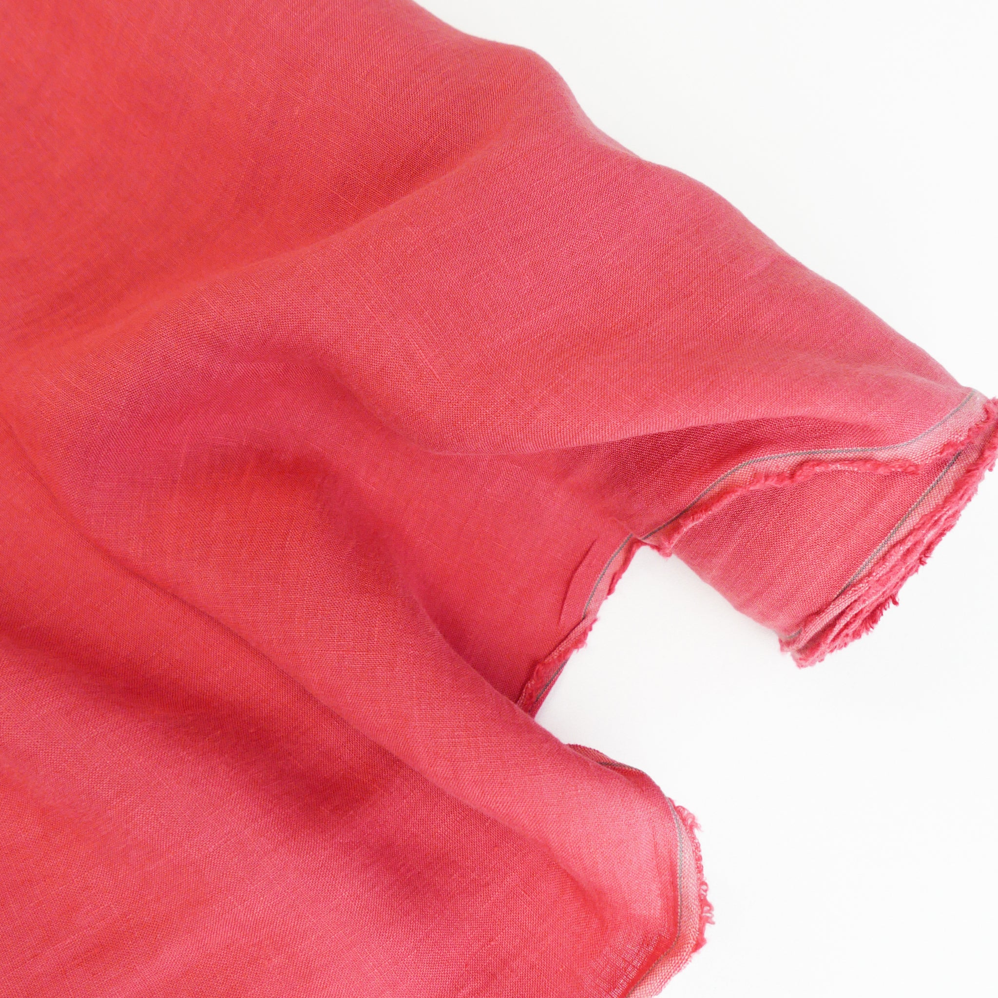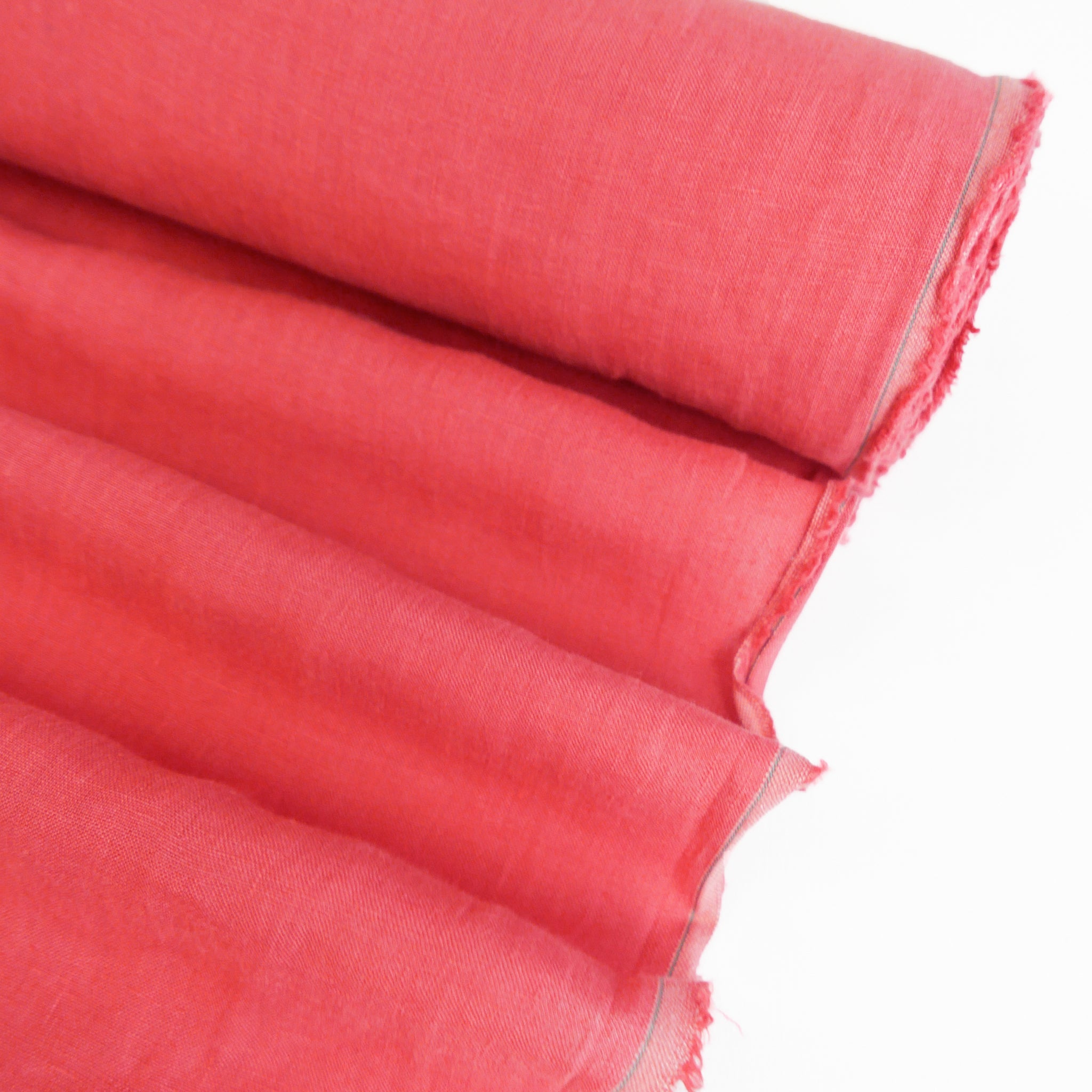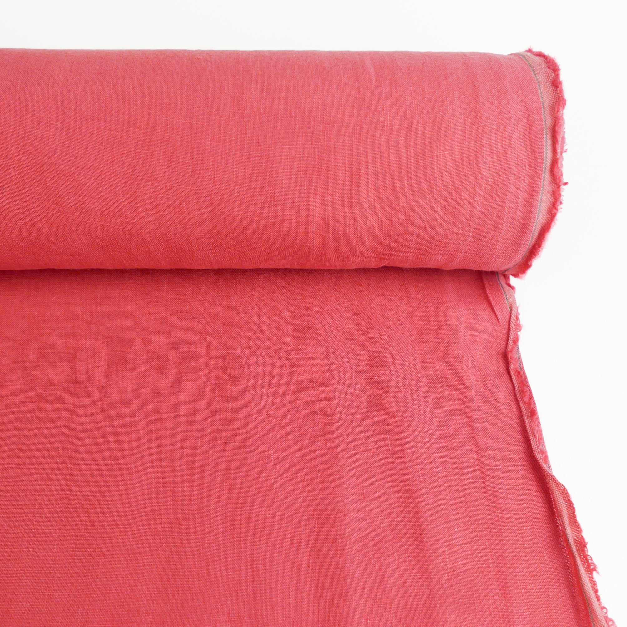 Coming in watermelon, this premium Korean linen has a crosshatch weave and a subtly slubbed finish. Yarn-dyed, it has a true, rich colour that fades a lot less over time. A delicious wide width with visible grain, it's mostly opaque and holds good, structured drape. It's waiting to be made into a fabulous linen suit, dress or everyday wide-leg pants. Also suitable for homewares.