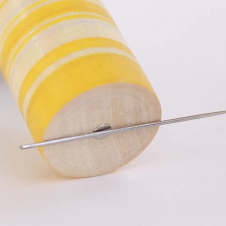 A charming pincushion made with traditional techniques from northern Japan. In the snowy Tsugaru region, woodworkers carve small dolls called kokeshi as souvenirs for tourists to the region's famous hot springs.