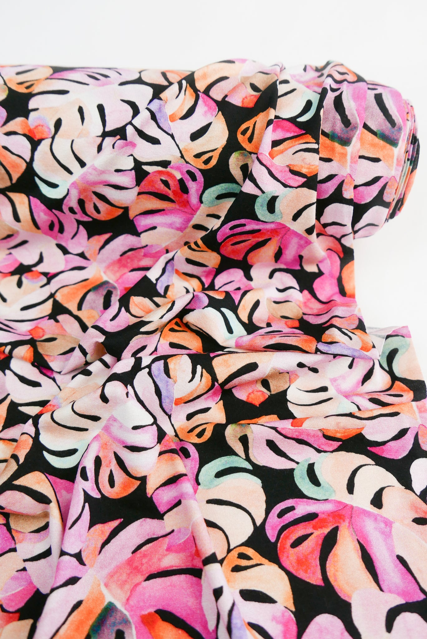 Barbados - Printed Viscose Knit | Pink Monstera (LAST CUT - 2.8M)