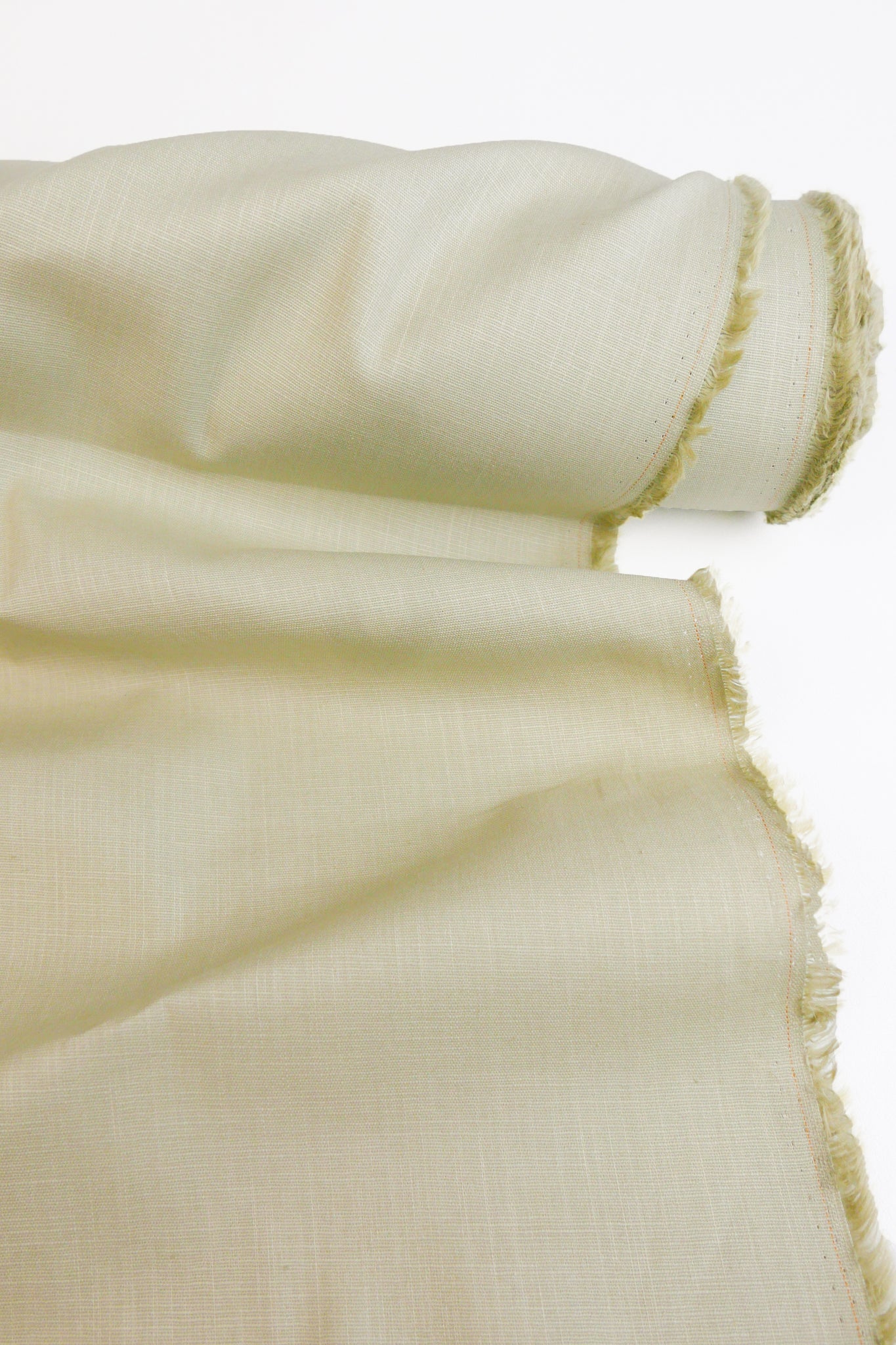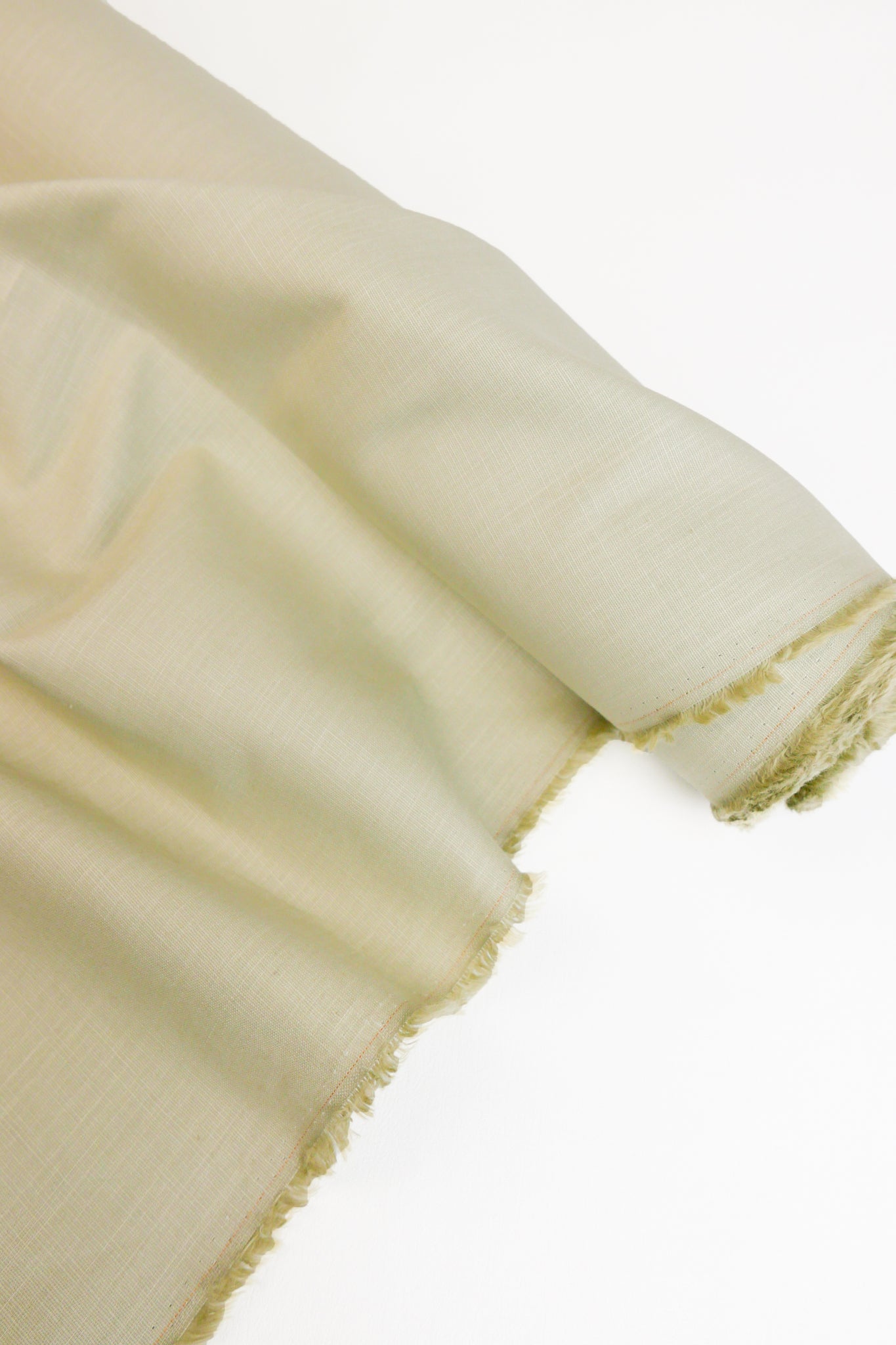 Bambi is a structured mid-weight linen in a wheat colourway with a crosshatch weave. It has a small lycra content giving it a slight stretch, and an opulent, buttery soft hand feel. Mostly opaque, Bambi is waiting to be made into a striking linen suit, dress or everyday wide-leg trousers.