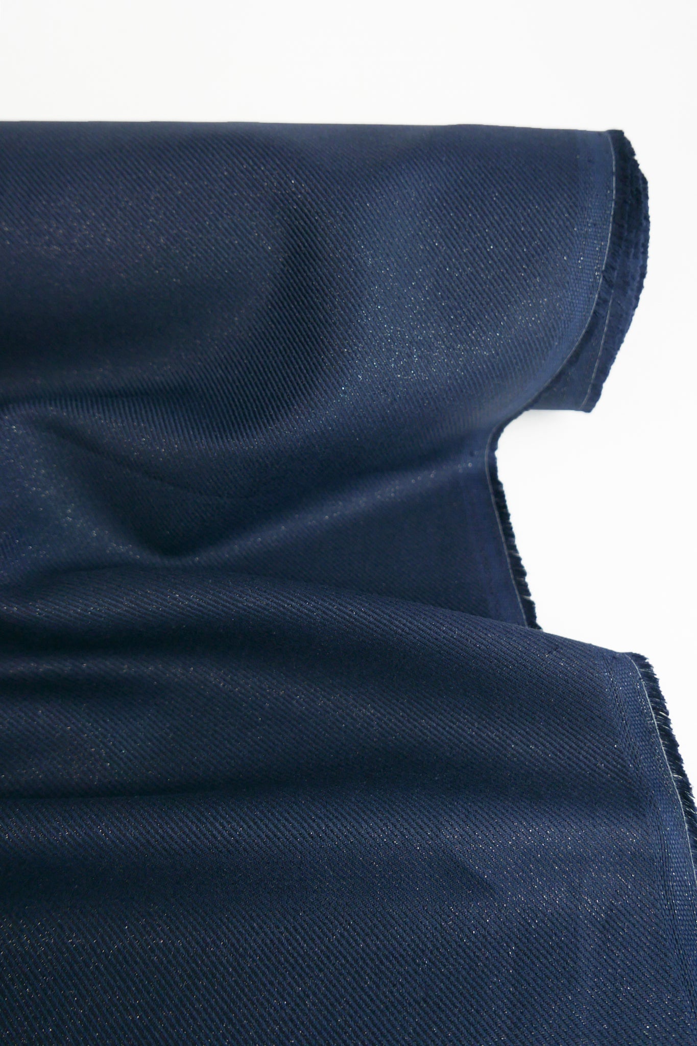 Bianca is a unique specialty mid-weight linen with a glittering, foiled printed twill on a deep lapis base cloth. It is gently structured and opaque with a true linen handle. Cool and breathable, it would make for an exceptionally versatile year-round piece. With an iridescent face, it's glamorously perfect for a notable gathered dress, shirt, skirt, or a fun pair of pants.