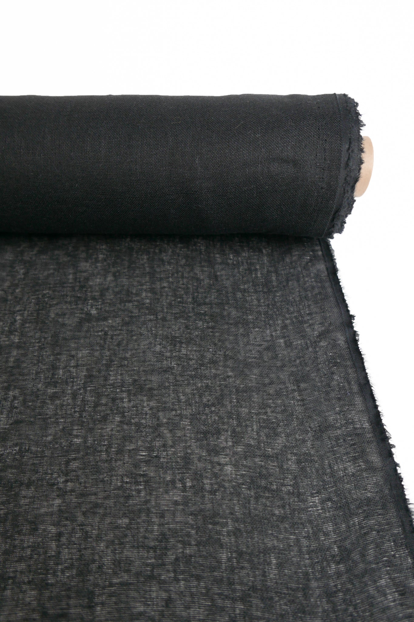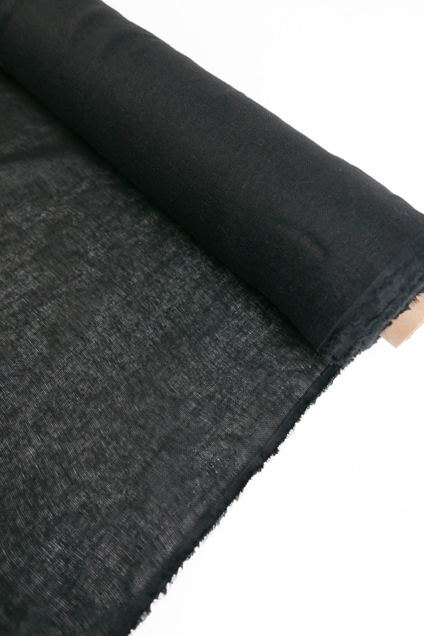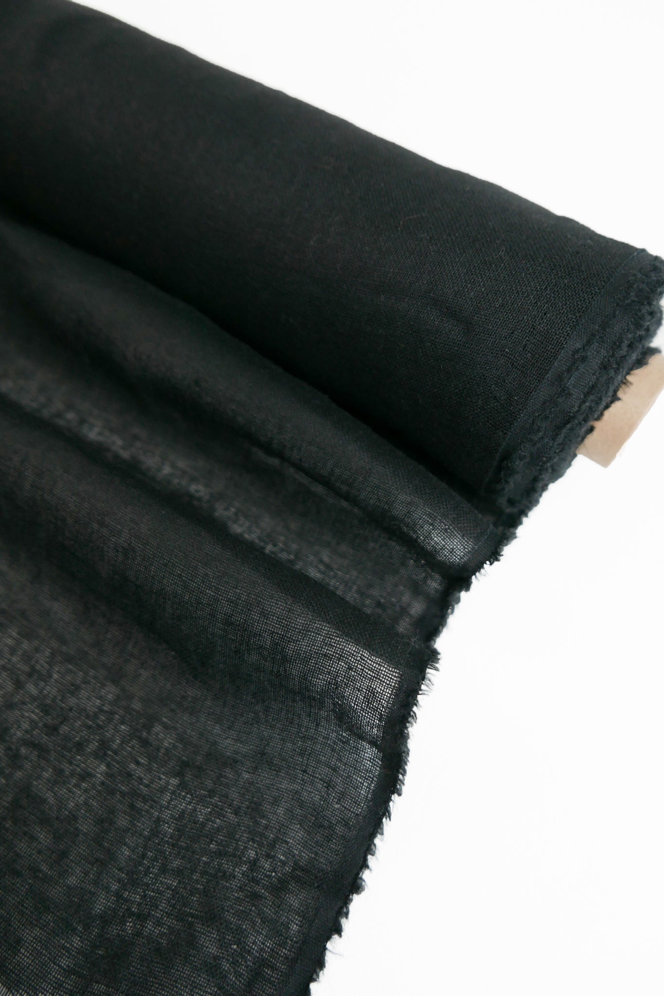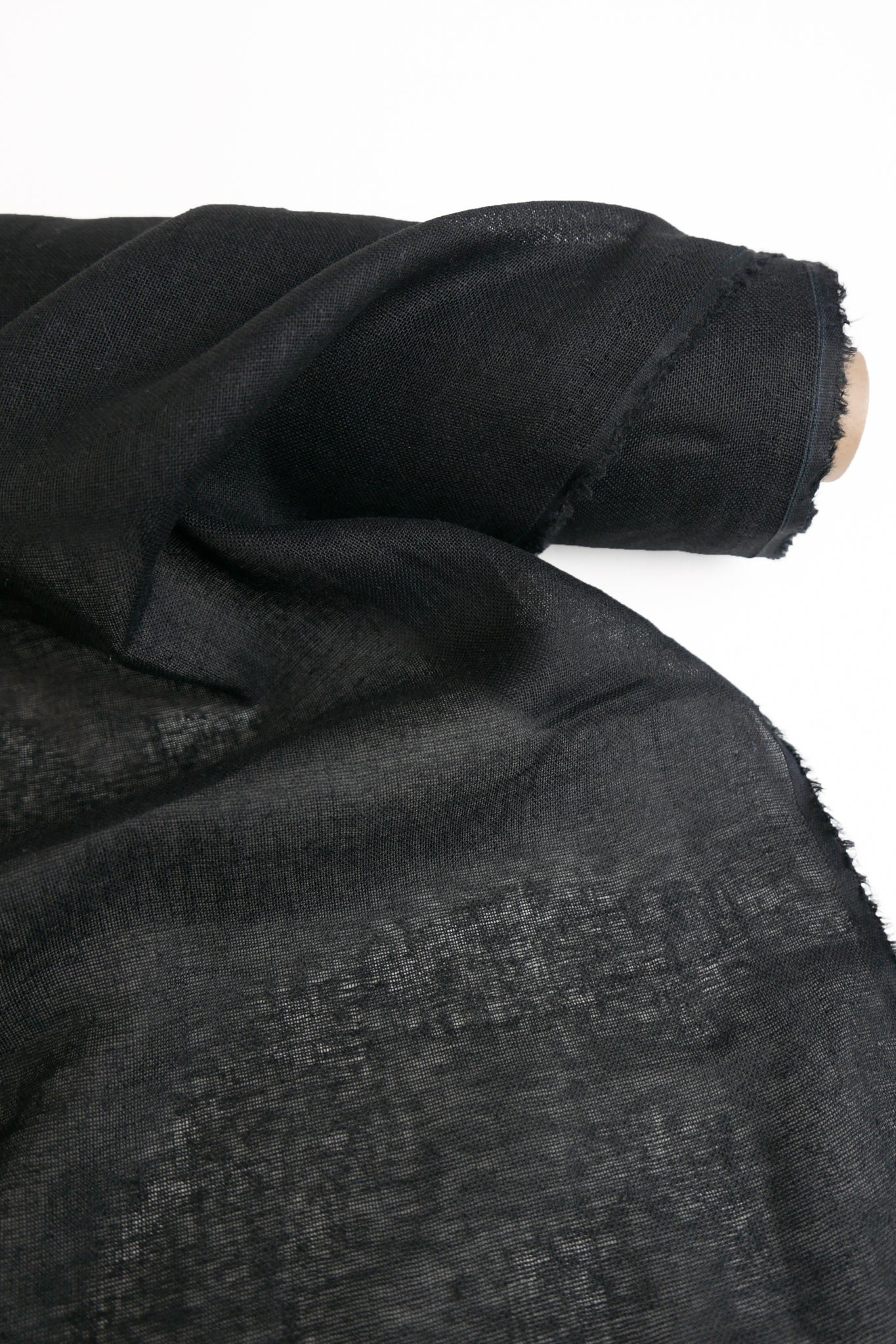 This fabric is a beautiful midweight linen gauze with slubs throughout, coming in black. Loosely woven and semi-opaque, it has a summery, everyday quality to it with good structured drape. Perfect for summer-weight dresses, blouses and skirts.