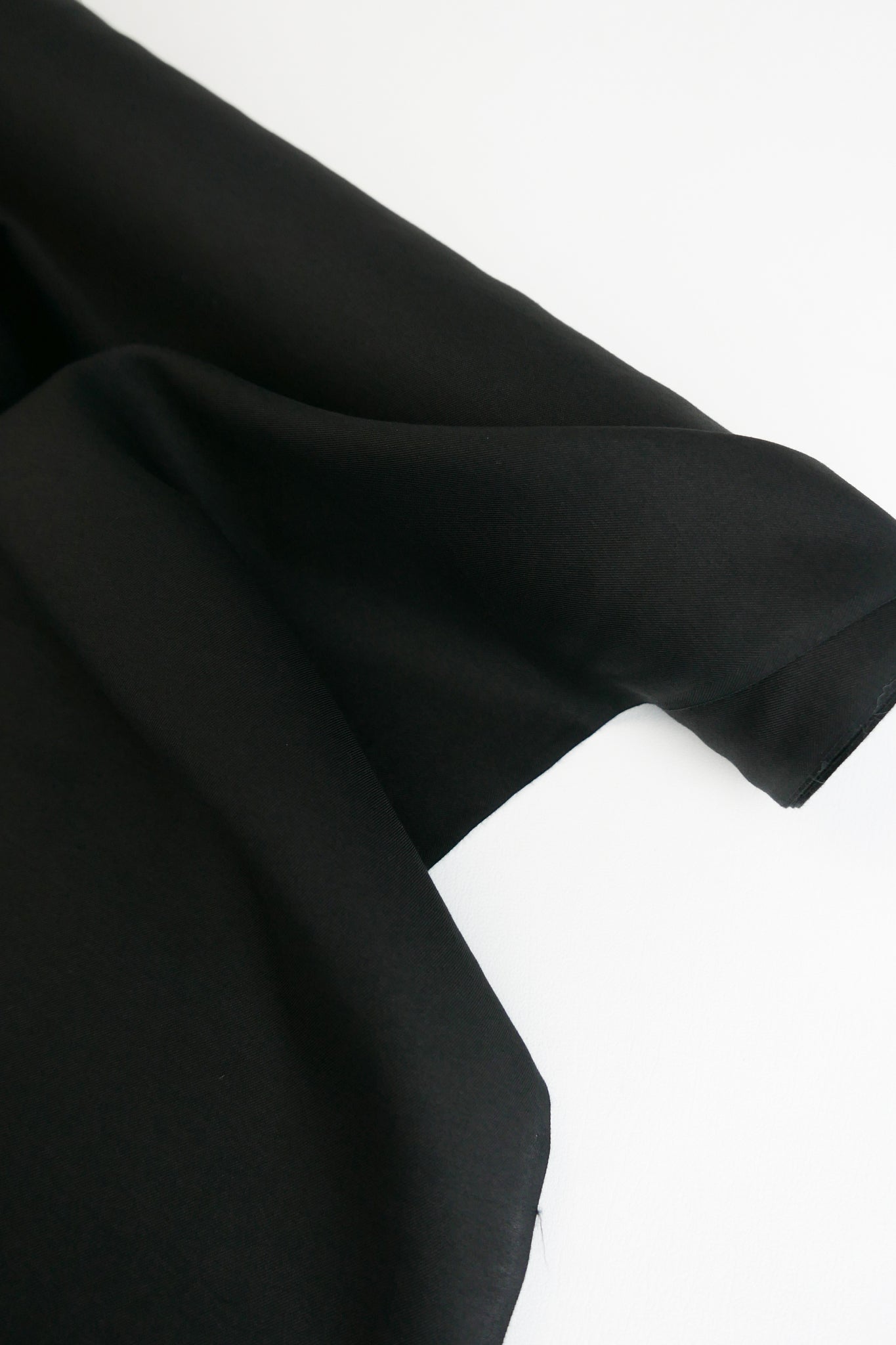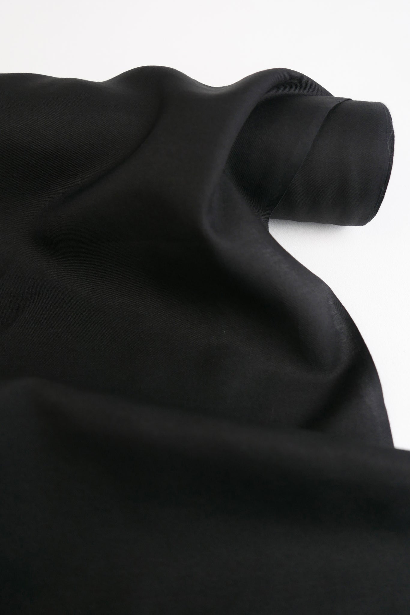 This is an opulent silk cotton shirting in a timeless black. Crafted from a luxurious blend of silk and premium cotton, it has an incredibly soft hand feel and a fine twill. It holds structure beautifully. Completely opaque, it is the ideal weight for shirts, dresses, blouses and more.
