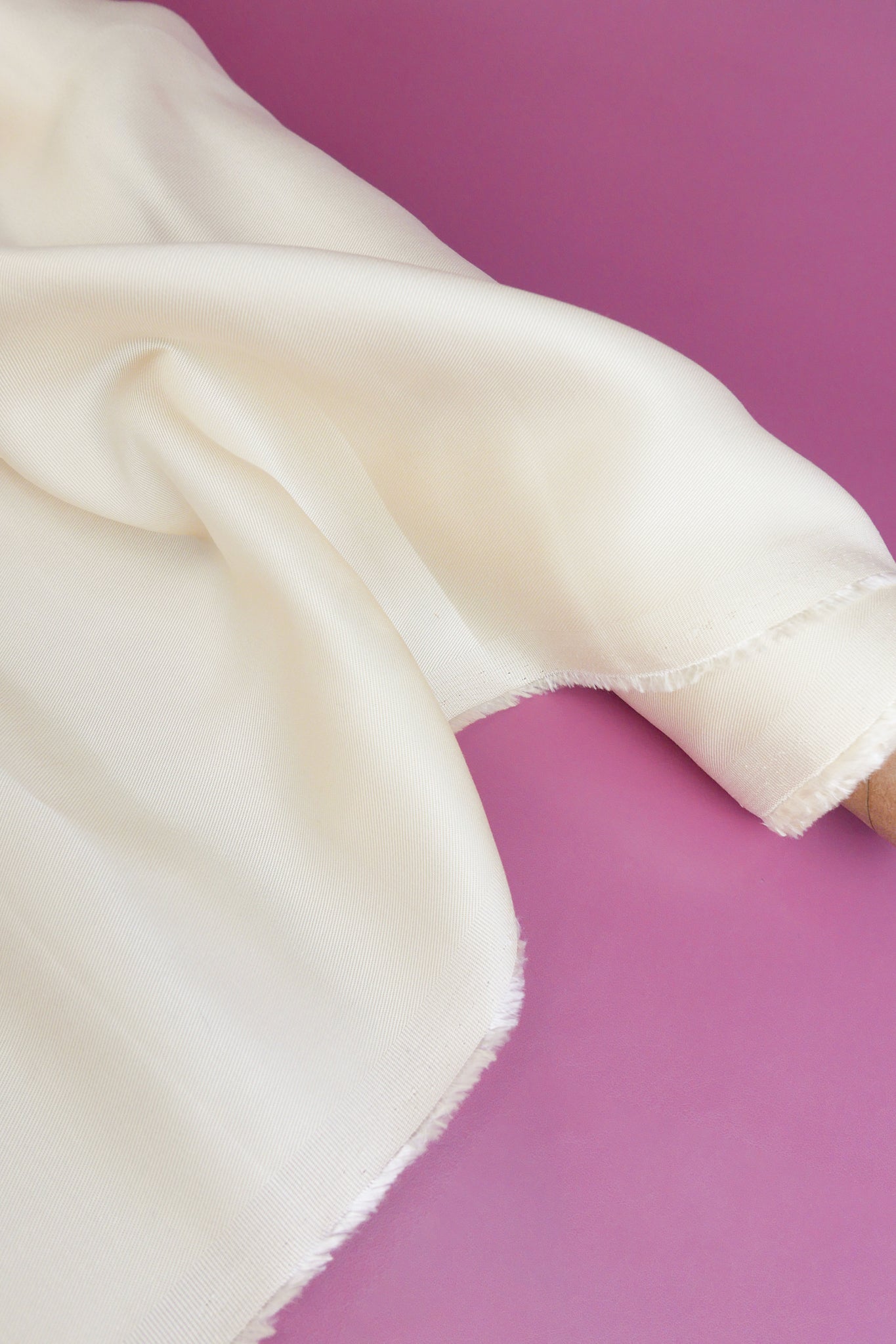 Made with meticulous Japanese craftsmanship, this tencel twill is a showstopper. A 'feel good fibre', this Tencel has a classic twill coming in a bone colourway with a polished finish that gives it a beautiful glow. Midweight and opaque, it has structured drape, making it incredibly versatile and would work well for bias-cut pieces. A dream to work with it's suitable for dresses, skirts, blouses and pants.