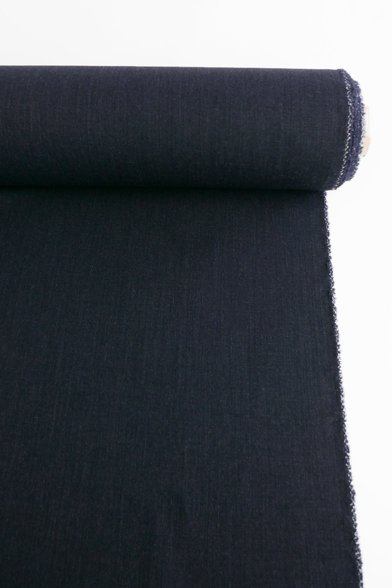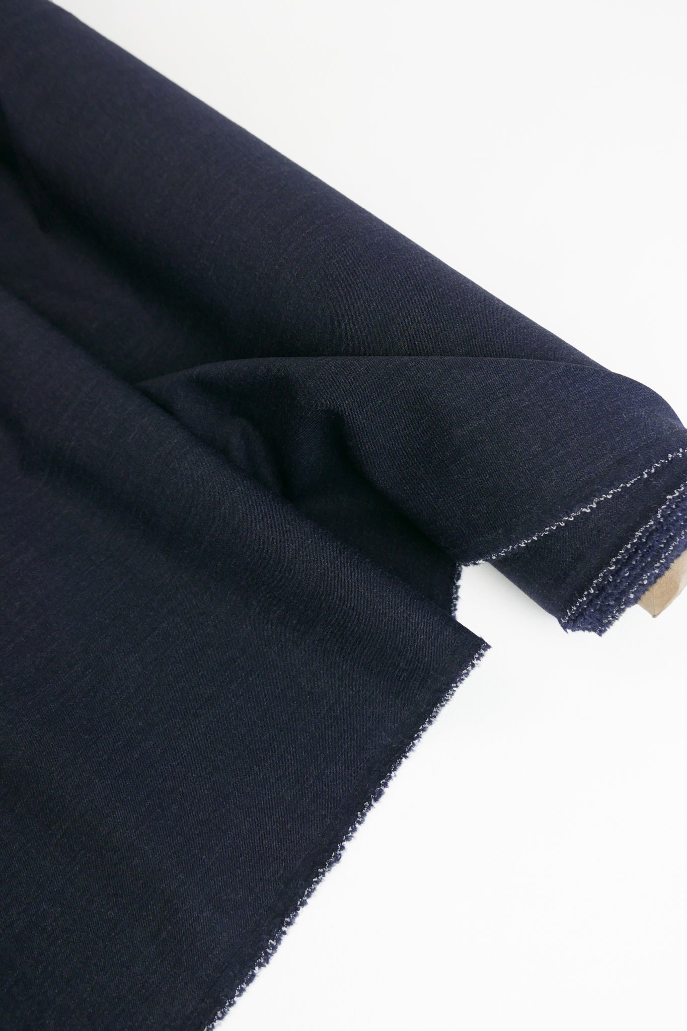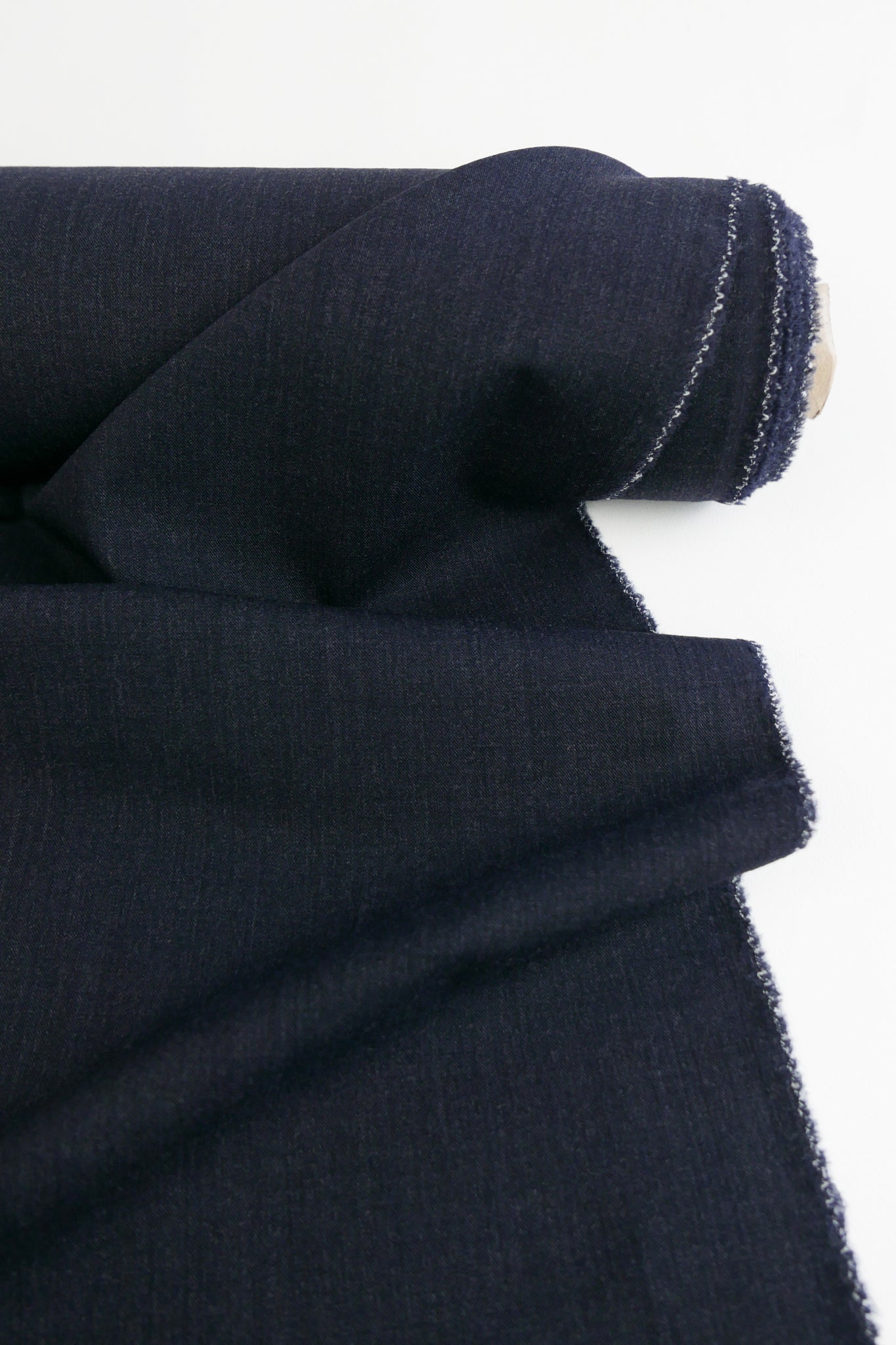 Langip is a timeless Italian wool suiting in a deep midnight blue. Completely opaque with good stretch and structure, it is breathable and versatile for year-round suiting. Woven in Italy from some of the world's finest yarn, this suiting is soft to the touch and is perfect for pieces such as jackets, tops, dresses and skirt.