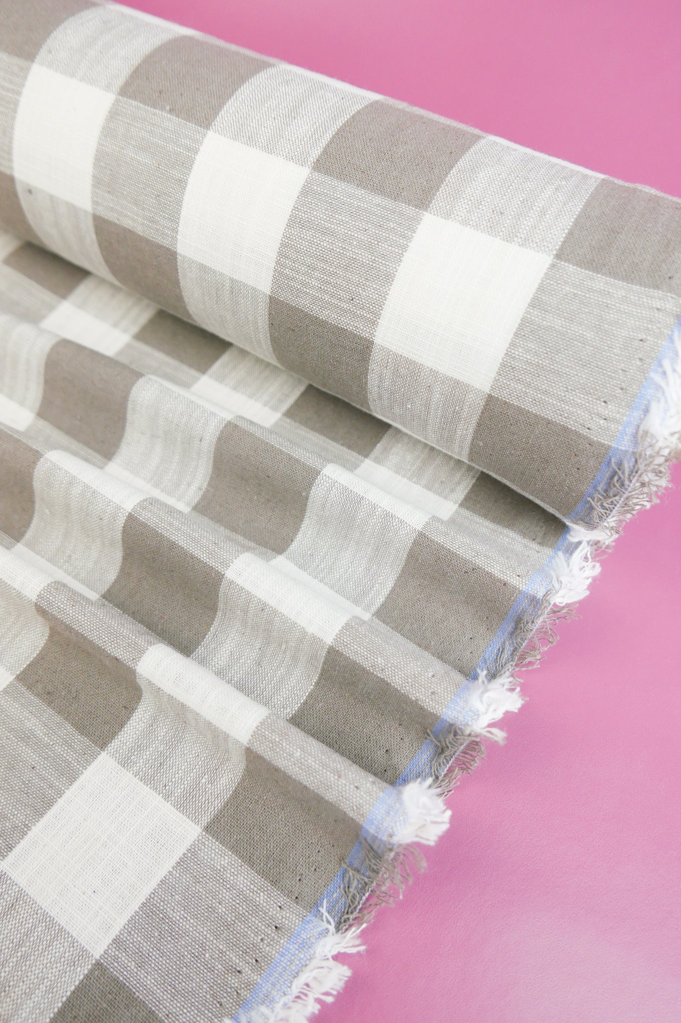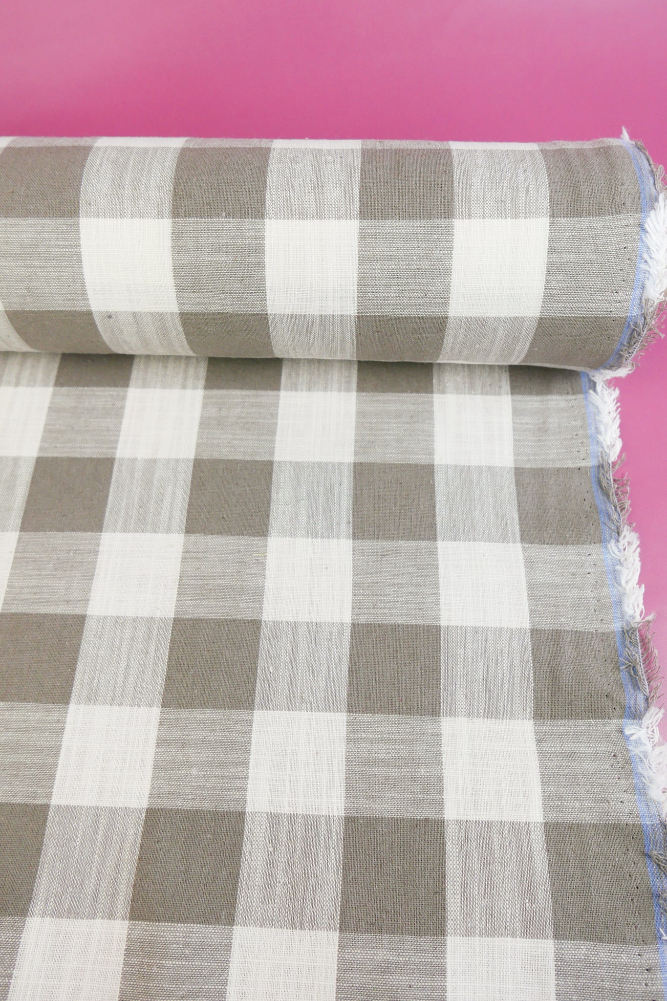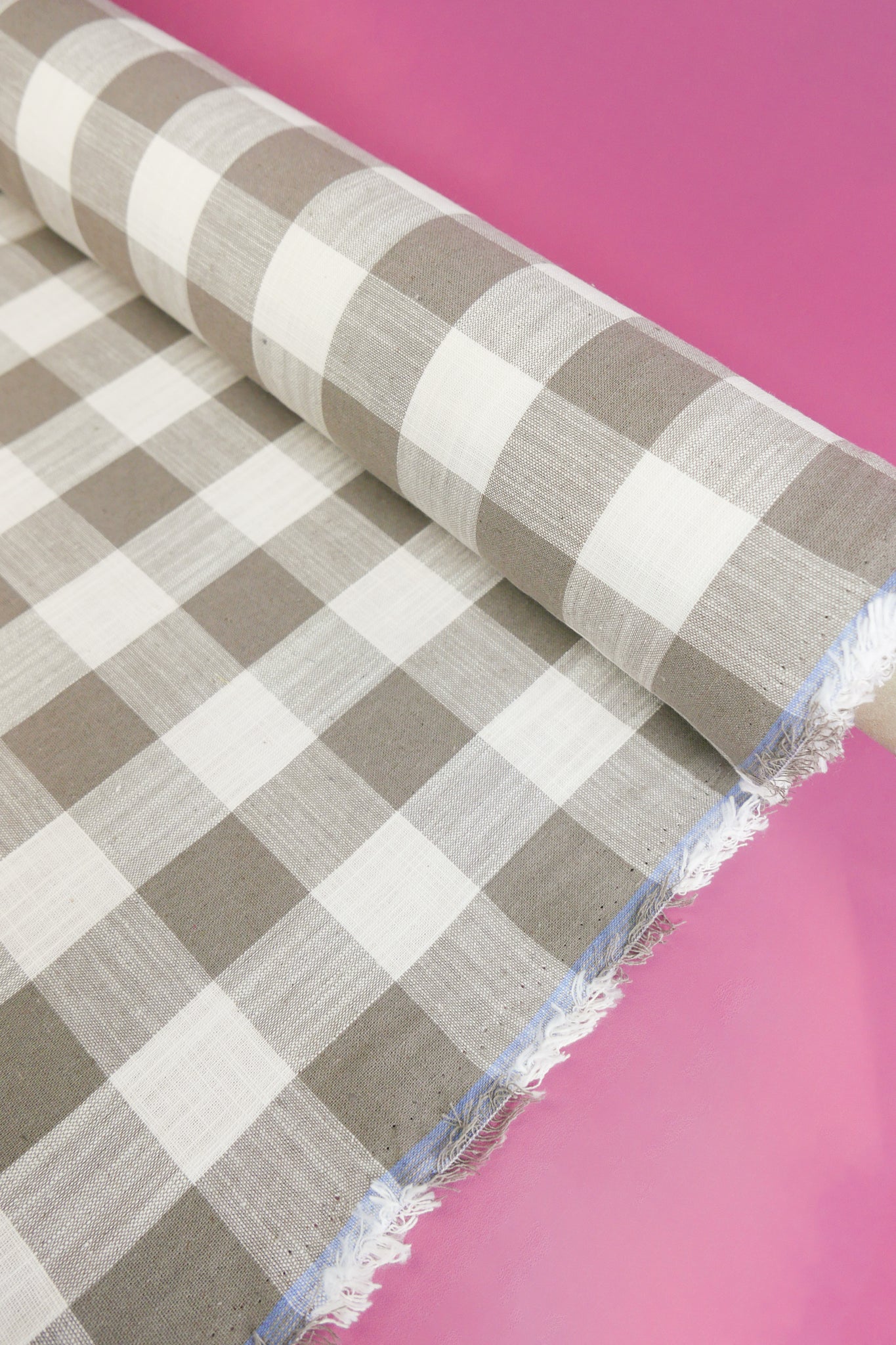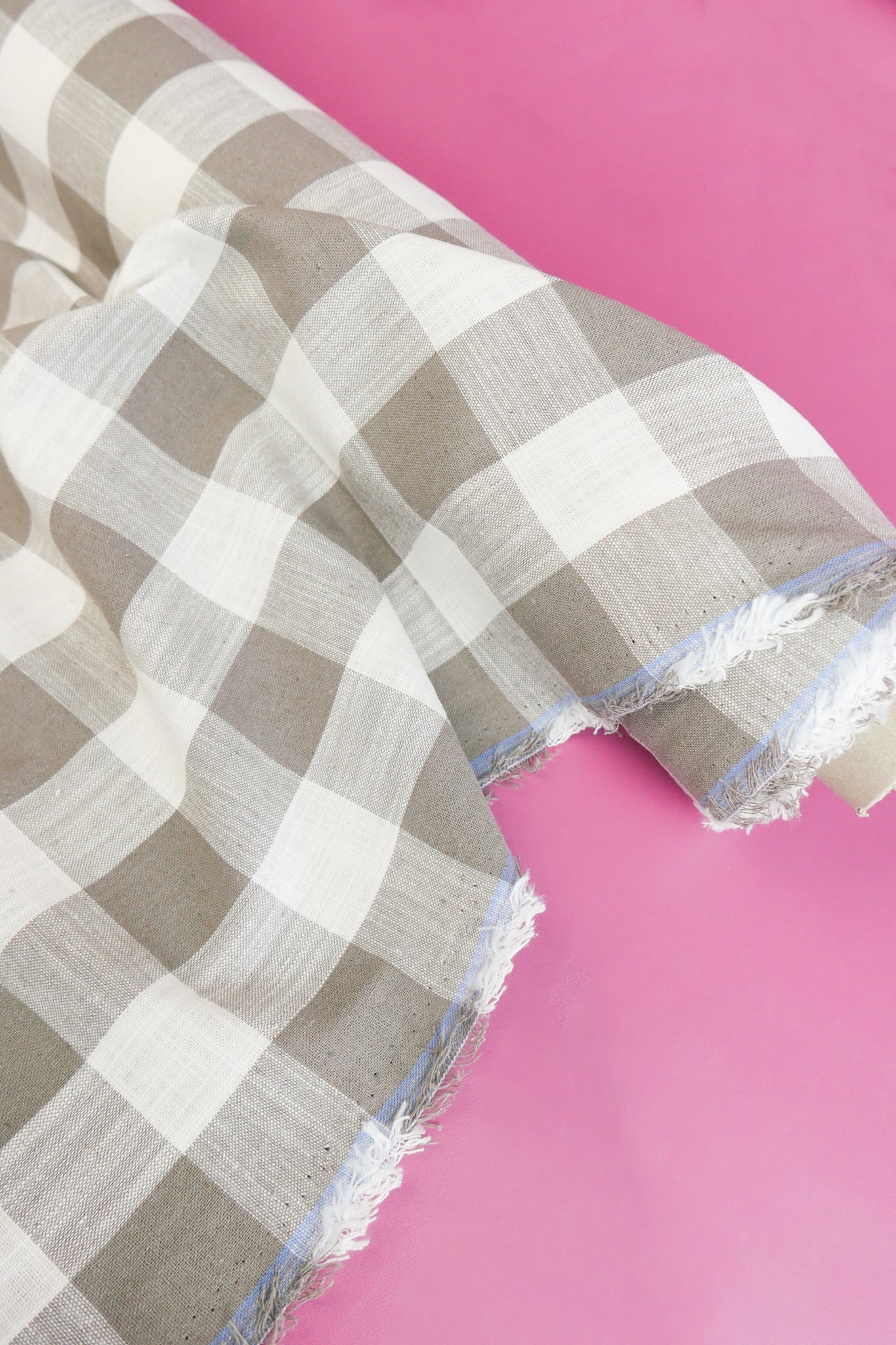Babette is a beautiful midweight linen gauze with slubs throughout, coming in yarn-dyed buffalo check in mouse grey and off-white. Loosely woven and semi-opaque, it has a summery, everyday quality to it with good structured drape. Perfect for summer-weight dresses, blouses and skirts.