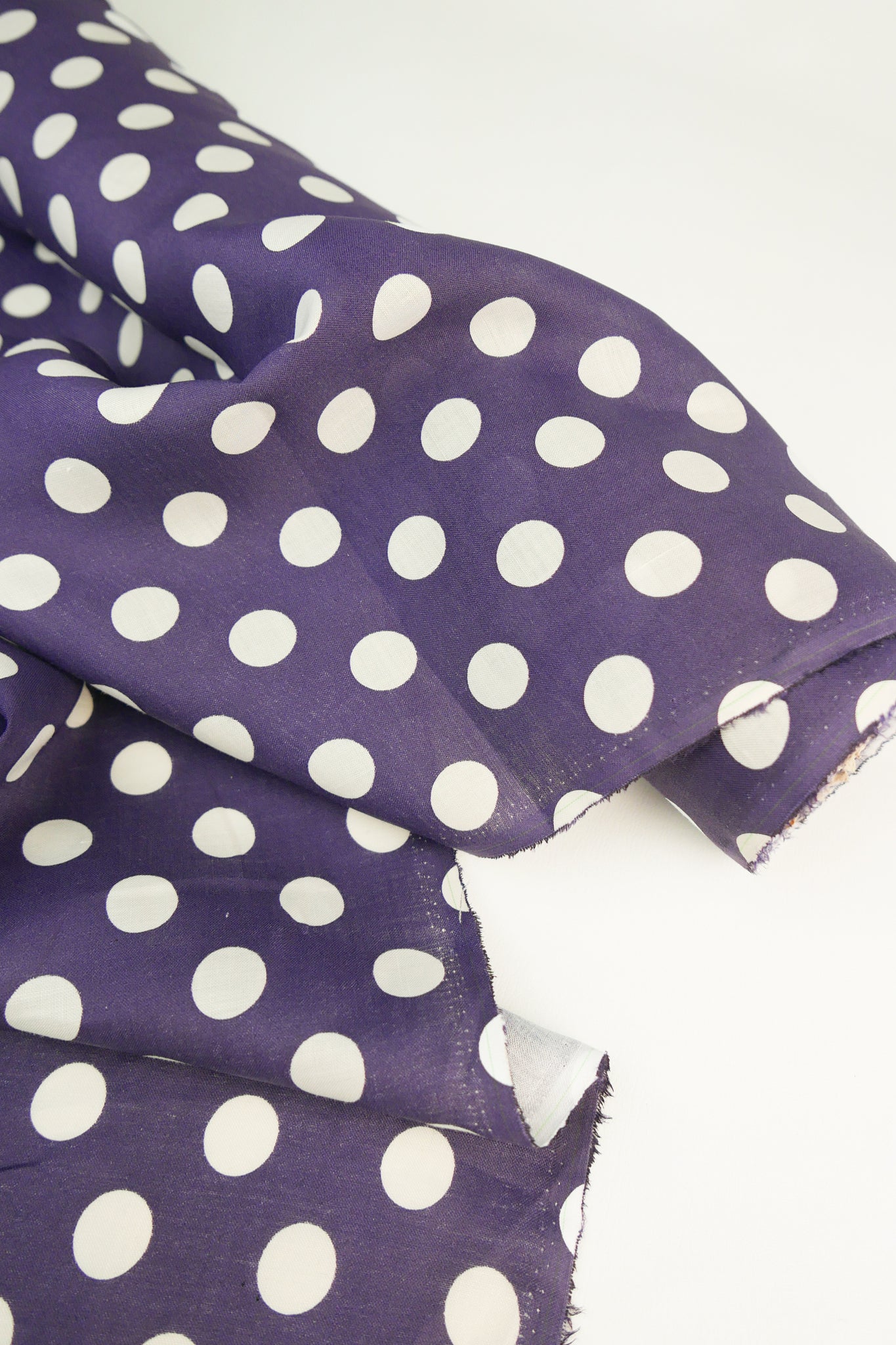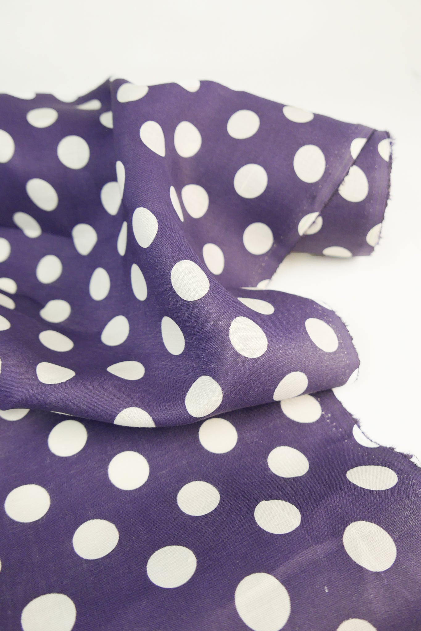 Bowie is a printed midweight linen featuring a striking spot design in off-white against a violet background. Bowie is mostly opaque, gently structured and will hold pleats well. An ideal trans-seasonal weight, it's perfect for shirts, trousers, skirts and dresses.
