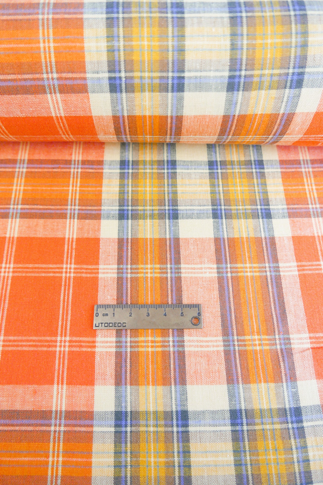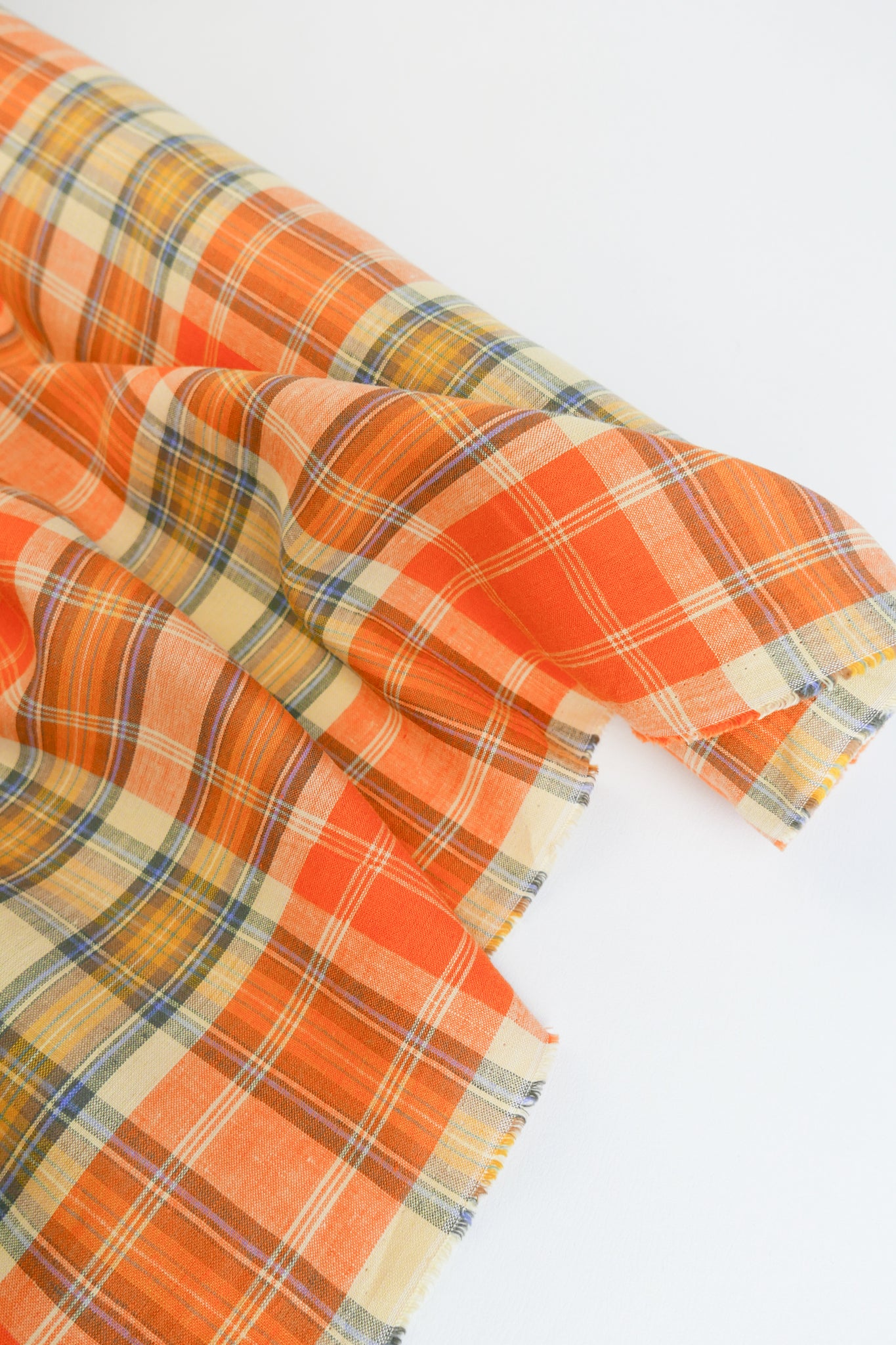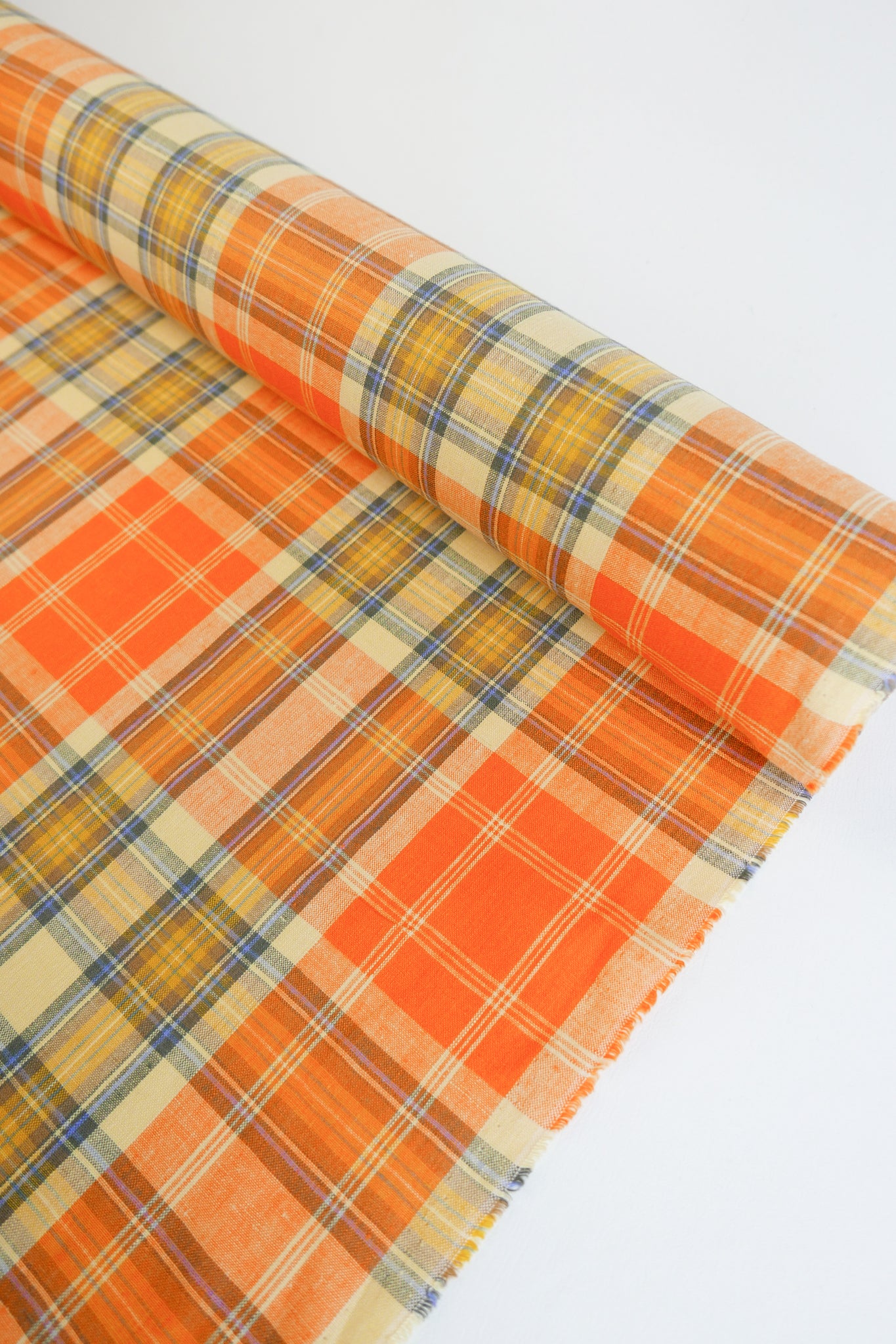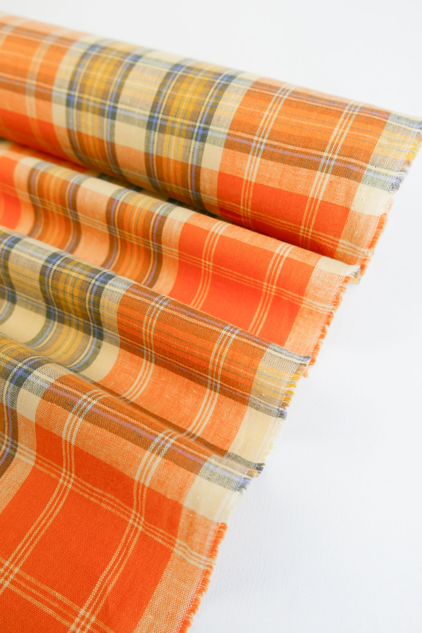 Vista - Yarn Dyed Linen Check | Tangerine (LAST CUT - 2.4M)