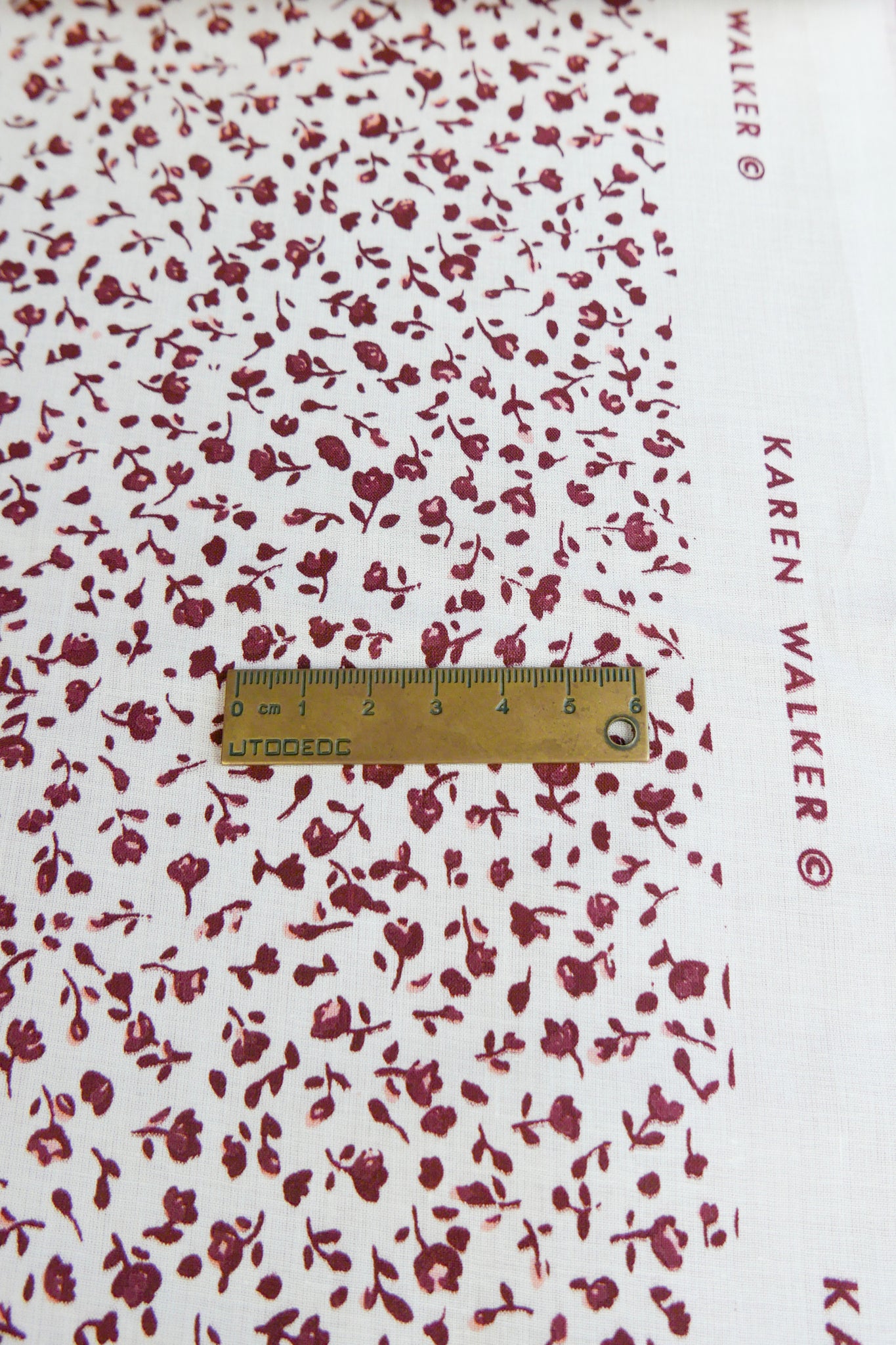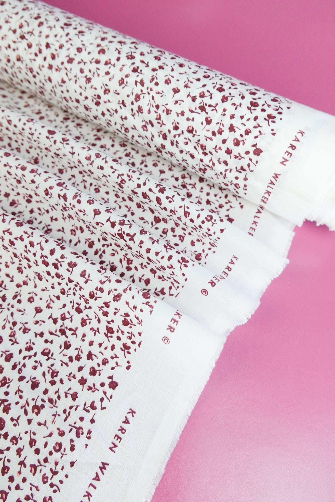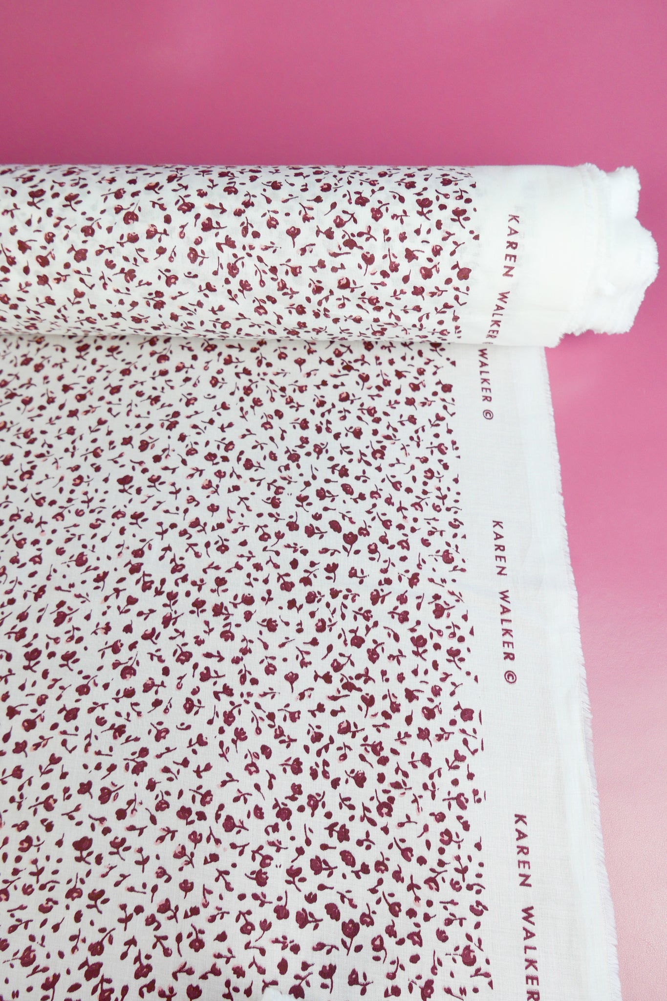A gorgeous printed voile in a timeless off-white, printed with a sweet mini floral design in maroon with light pink accents. It is ultra-lightweight, airy, and gentle against the skin. It has that beautiful barely-there feel. Due to its voile quality, it is semi-opaque and has a very soft structure, making it perfect for gathers, puffs and volume. This printed voile would make a beautiful blouse, skirt or dress.