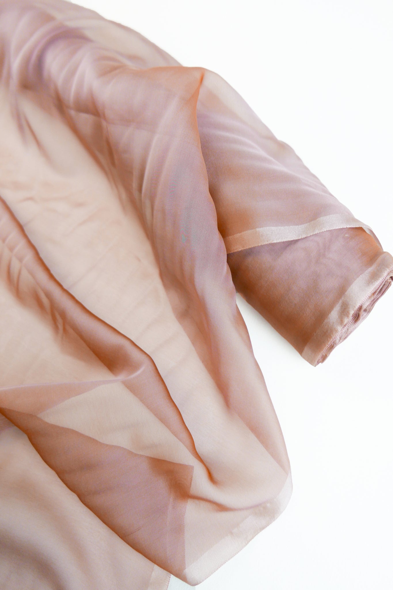 This elegant silk chiffon is iridescent, with interwoven shades of dusky lilac and burnt orange creating a mesmerising finish. Lightweight and super fine, it is luxuriously delicate. Floaty and sheer, it's the perfect blouse weight, or line your summer skirts and dresses for a super luxe feel.
