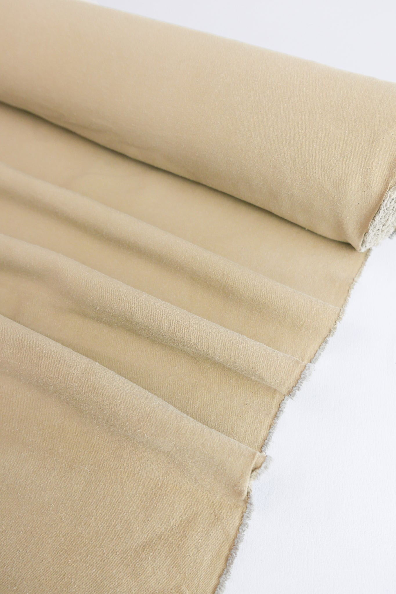 Pechino is a unique sandwashed silk, coming in a biscotti colourway with a matte finish. It has a tactile slubbed texture and is beautifully drapey, giving this fabric a refined, elevated feel. Midweight and totally opaque, Pechino would make a fabulous silk shirt, dress, or skirt.