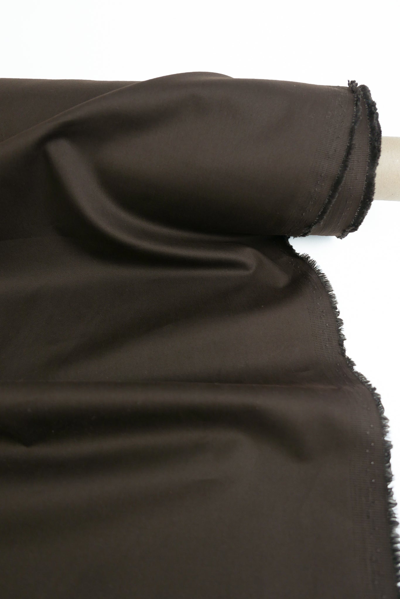 From the innovative Italian mill, Beste, Ripicca is a beautiful pant-weight cotton with a refined drill and a subtle peach finish. It comes in a rich chocolate colourway, with a super soft handle. Its slight stretch and medium weight make Ripicca an insanely versatile fabric. It would make a beautiful pair of utility pants, a matching jacket, a trench coat or even a classic dress.