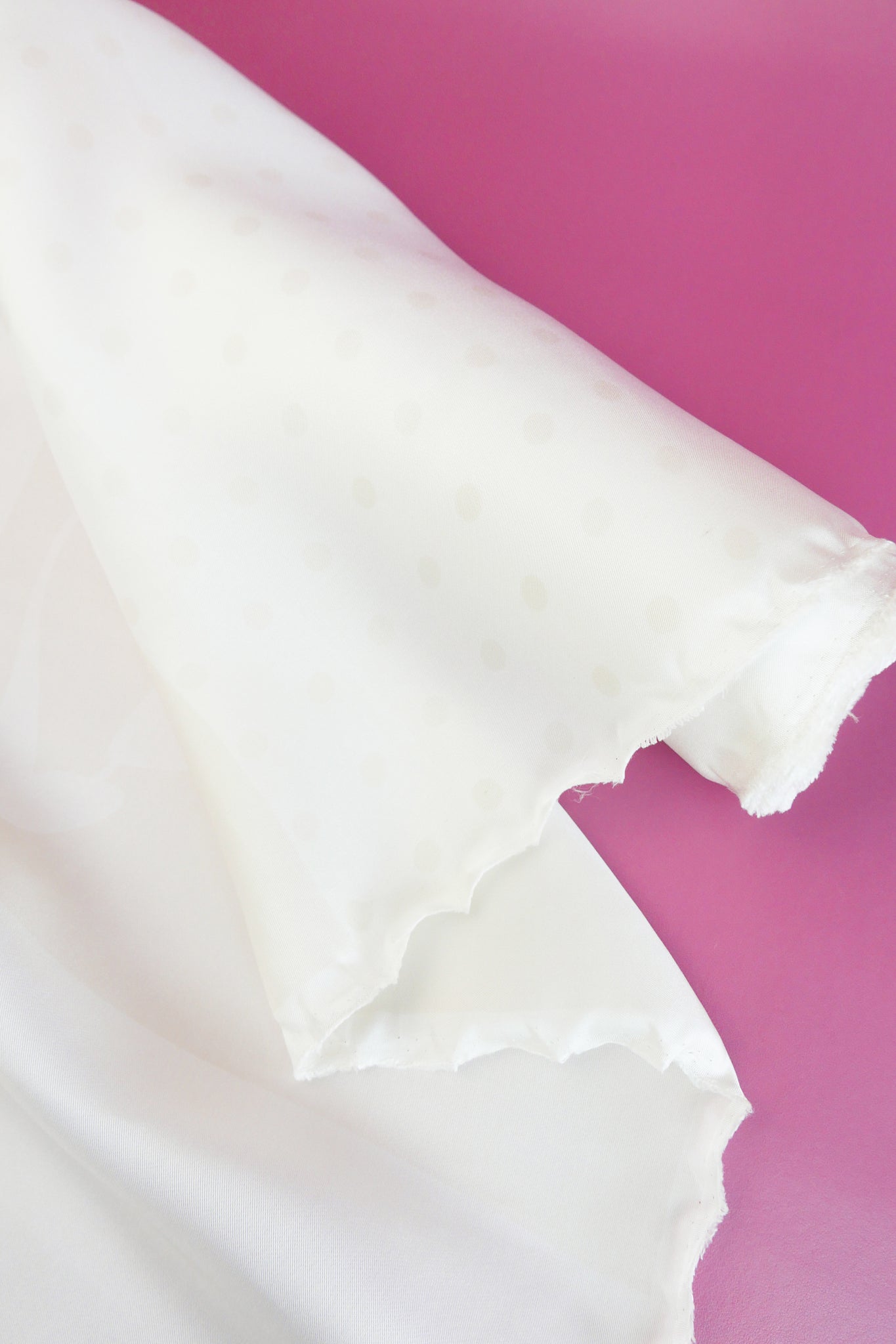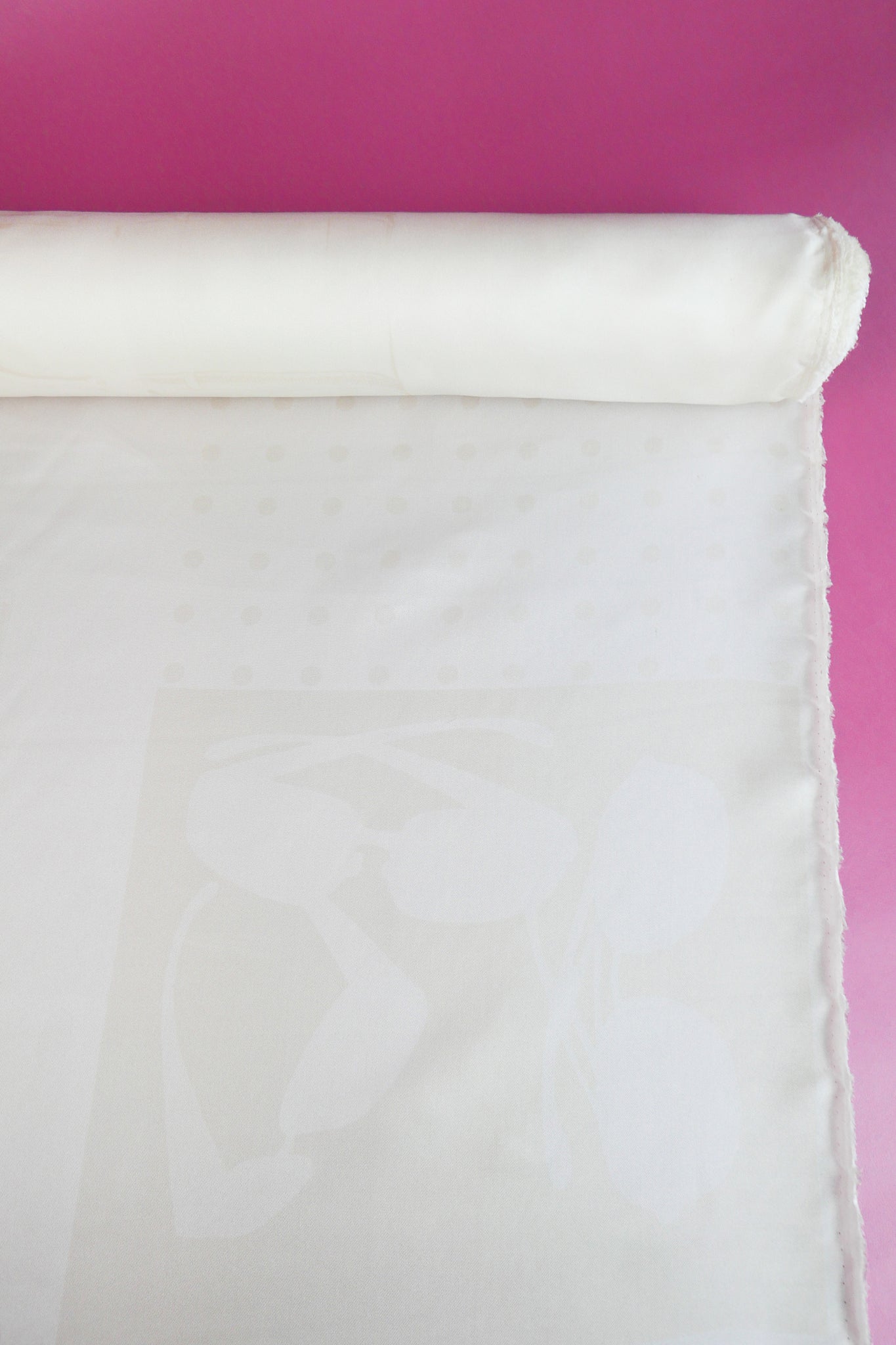 Mirage is an alluring silk twill that is full of secrets. At first glance, it appears as a plain off-white silk twill, but in the right light, a soft, barely there print of sunglasses, high heels and handbags is revealed. With a subtle twill, Mirage is full of lustre and sheen. It has wonderful drape, lustre and handle. Completely opaque would be the perfect fabric for luxe silk blouses, shirts, skirts or dresses.