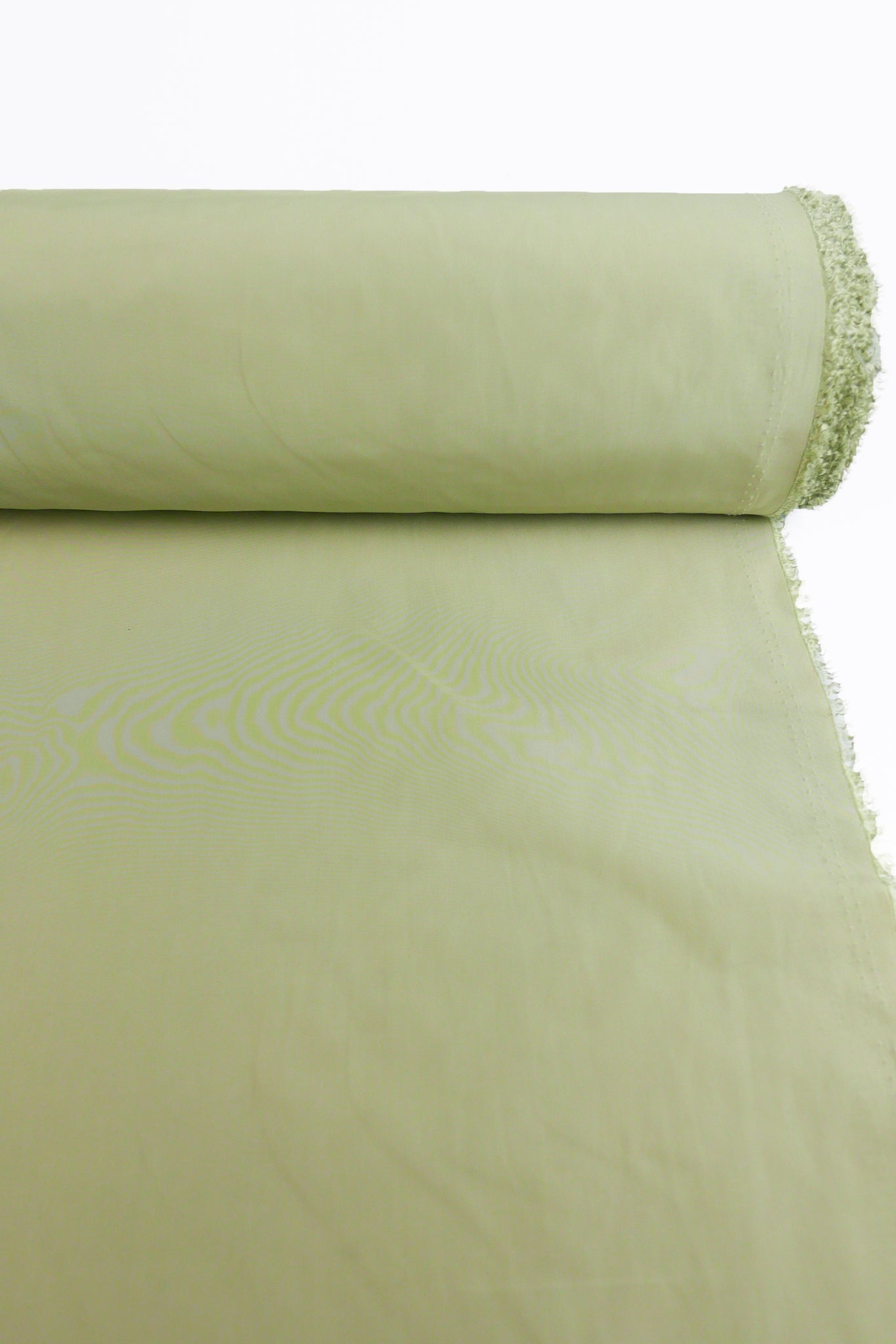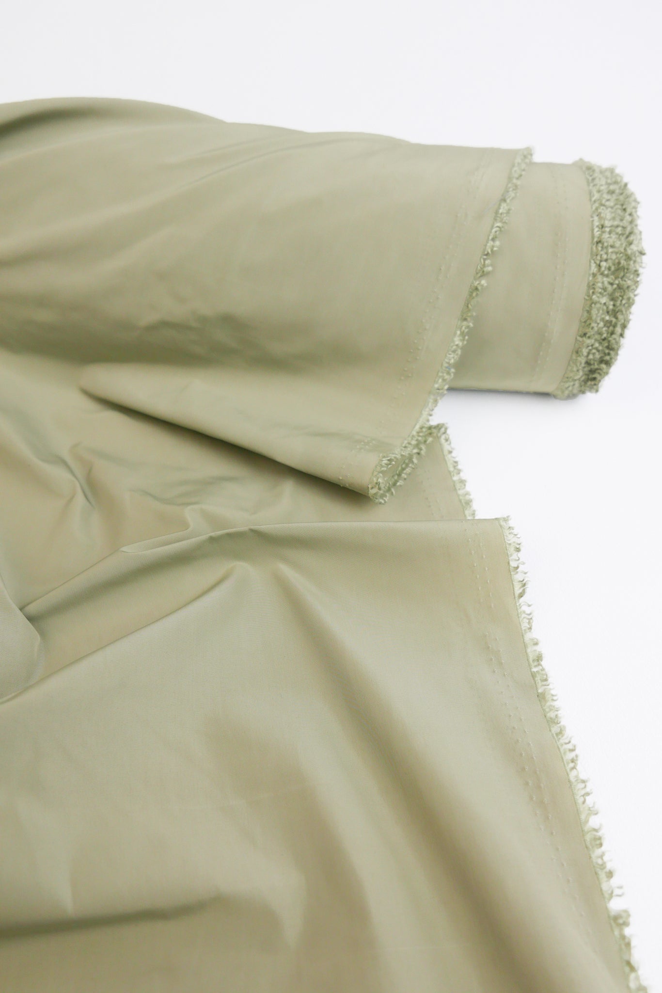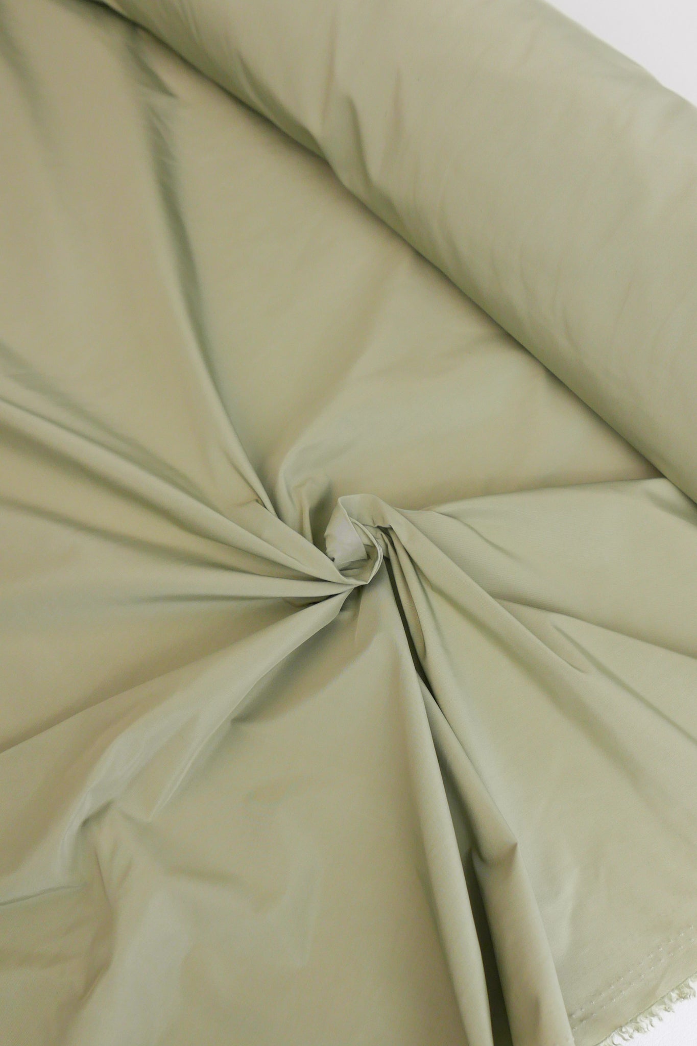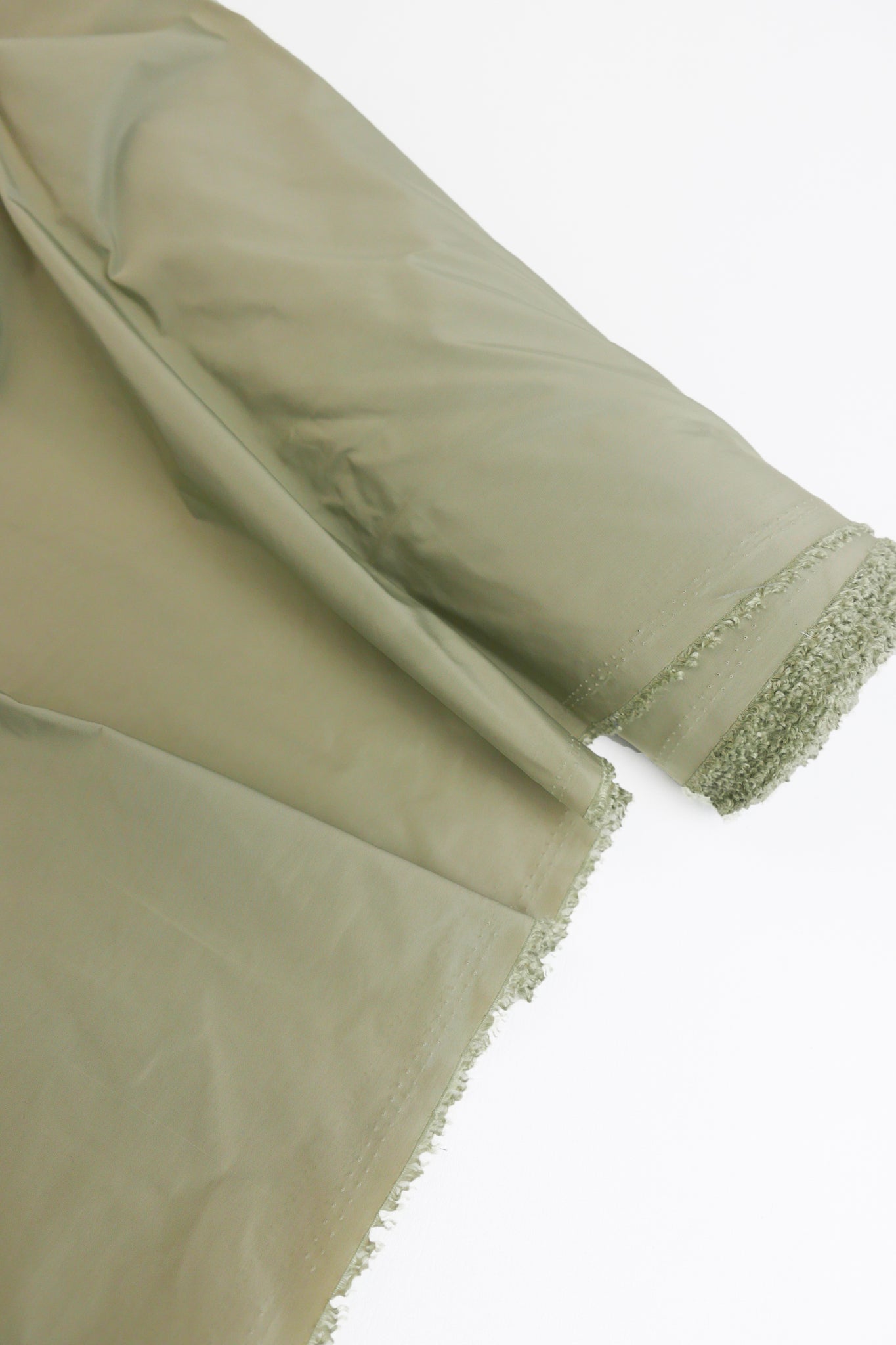 Aqua is a unique showerproof taffeta in a sage colourway. Woven with a memory yarn, this fabric holds plenty of structure, folds and scrunches well, and is completely opaque. Take advantage of this matte memory yarn by creating structured pieces such as trench coats, pleated skirts, corsets or couture styles.
