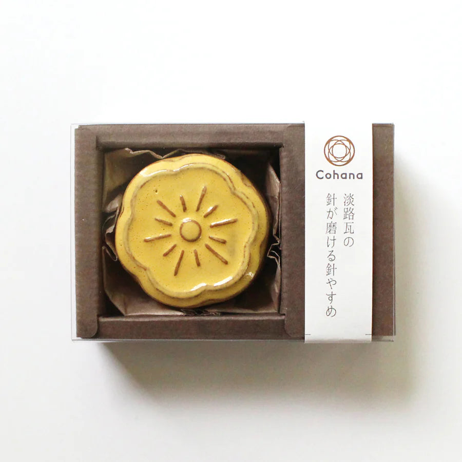Awaji Island in Hyogo is one of Japan’s leading producers of kawara, traditional roof tiles made from the island’s rich clay. This flower-motif Awaji Kawara Magnetic Needle Rest with Needle Polisher is crafted by the artisans of Irakato.
