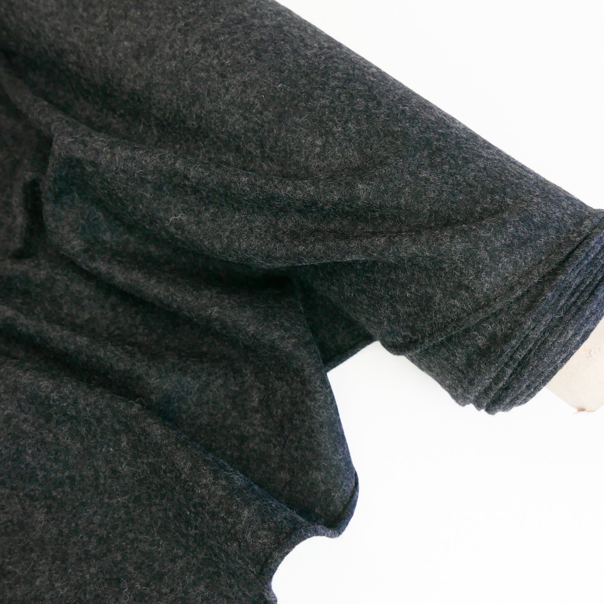 Bethany is a lovely midweight boiled wool coming in charcoal. It has a tight-knit weave and mechanical stretch, giving it plenty of body and a beautiful, structured drape. It has a fine finish, and being boiled is also moisture-wicking and odour-free. Bethany is ideal for unlined draped jackets, cardigans, wrap coats, trans-seasonal layering pieces, or babywear.