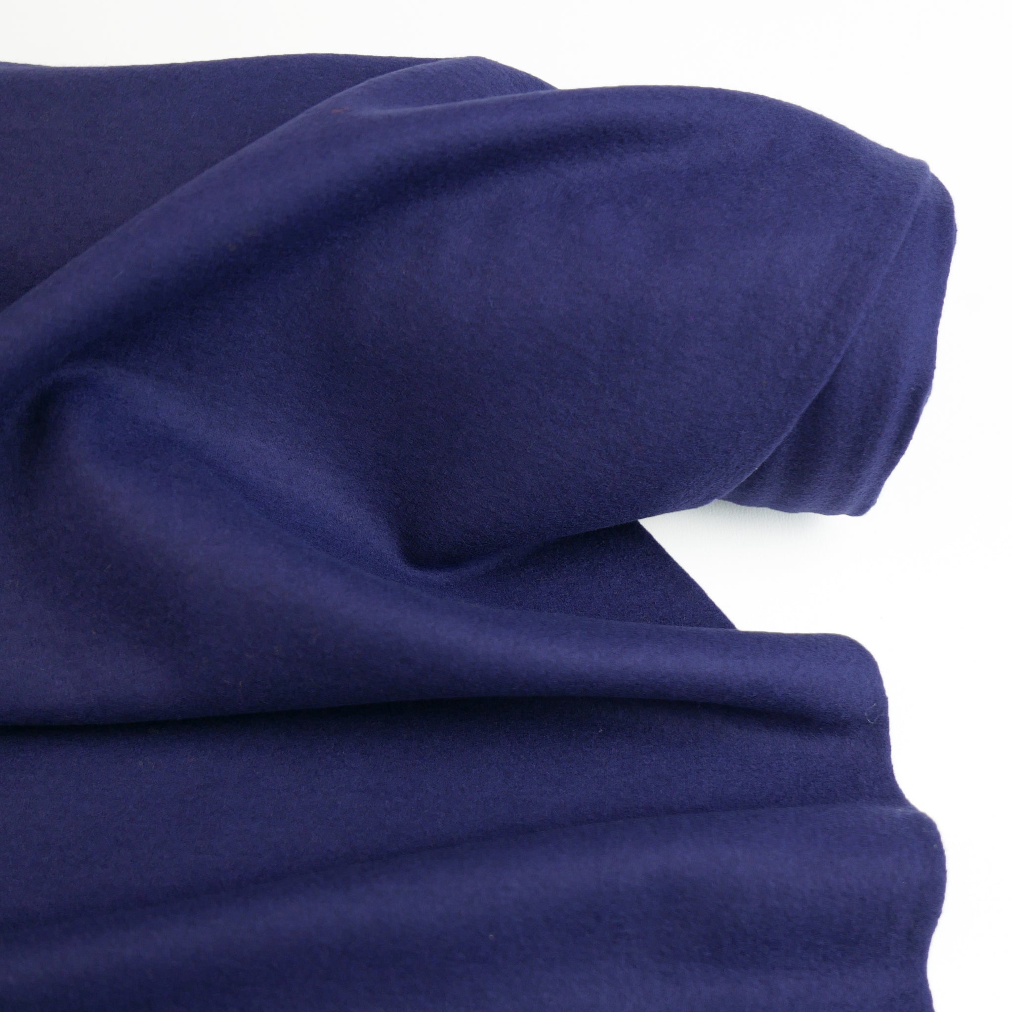 Bethany is a lovely midweight boiled wool coming in navy blue. It has a tight-knit weave and mechanical stretch, giving it plenty of body and a beautiful, structured drape. It has a fine finish, and being boiled is also moisture-wicking and odour-free. Bethany is ideal for unlined draped jackets, cardigans, wrap coats, trans-seasonal layering pieces, or babywear.