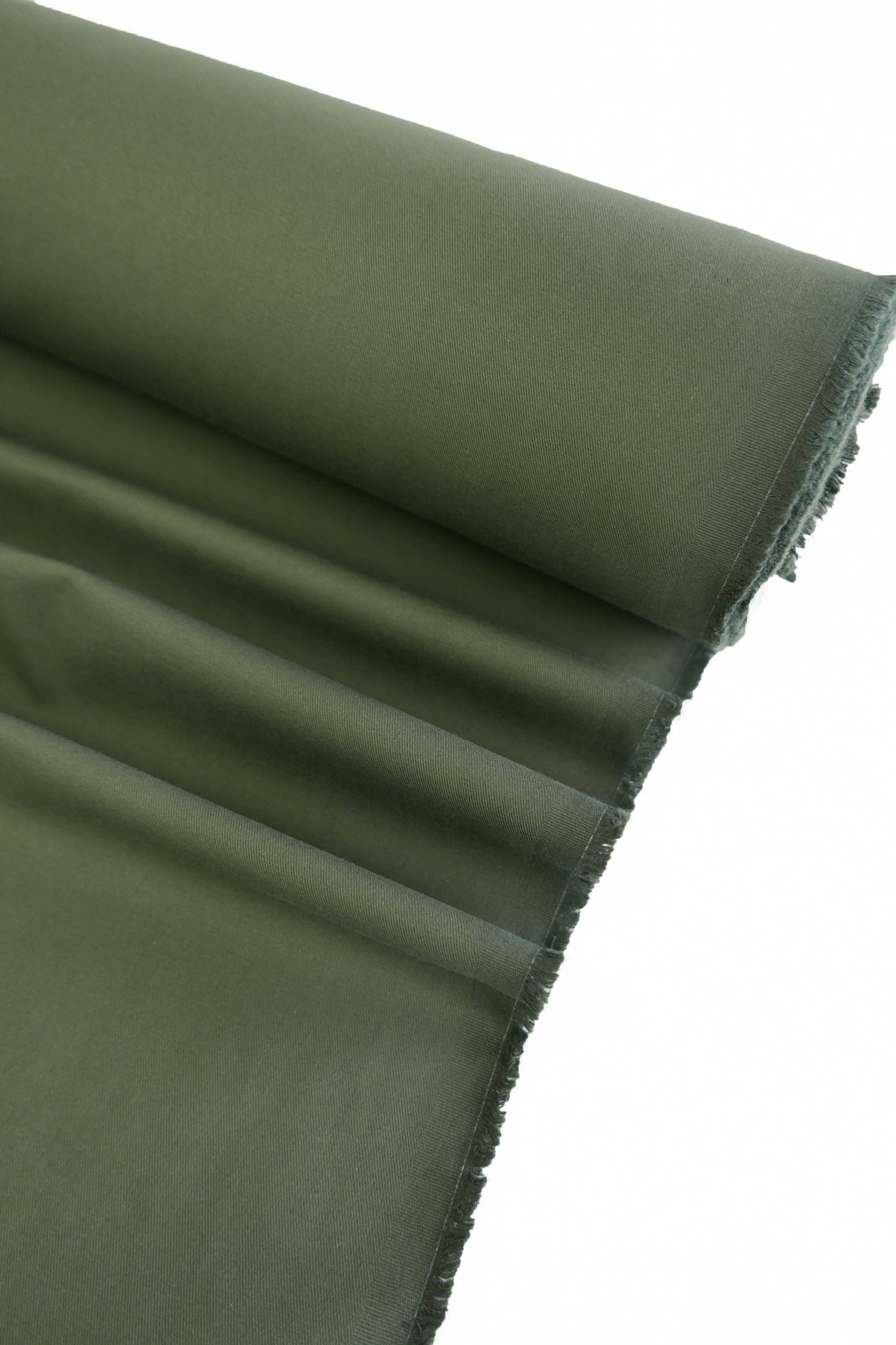 Mario is a timeless cotton drill in olive with a mercerised finish, giving it a subtle sheen. Midweight and with good structured body, it is ideal for garments with tucks and pleats. It would make a beautiful pair of utility trousers, as well as a shirt, skirt, or dress.