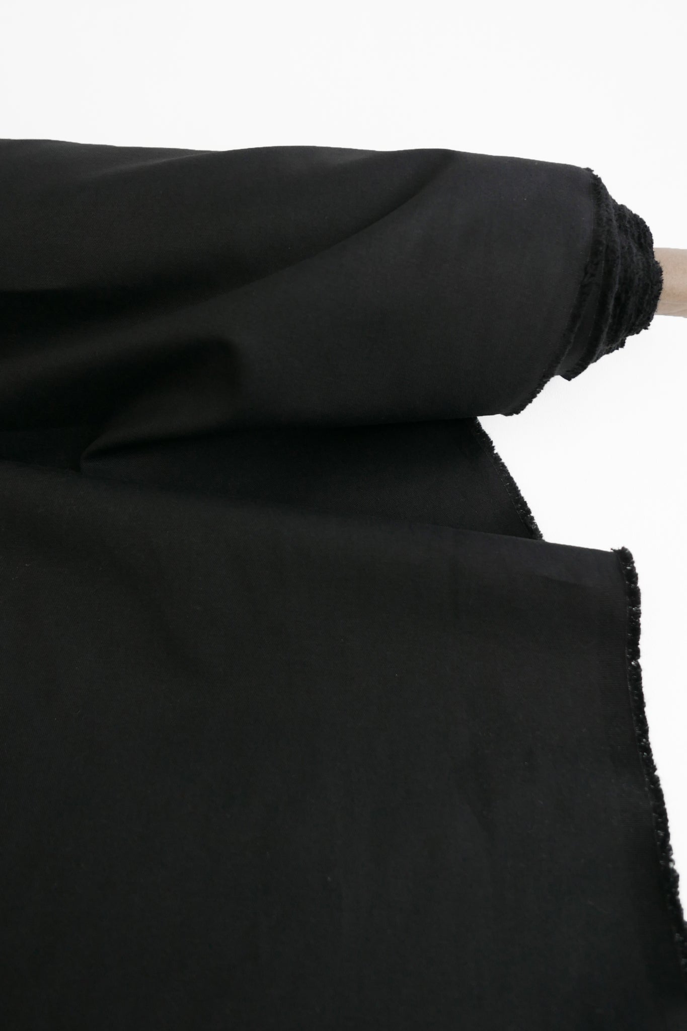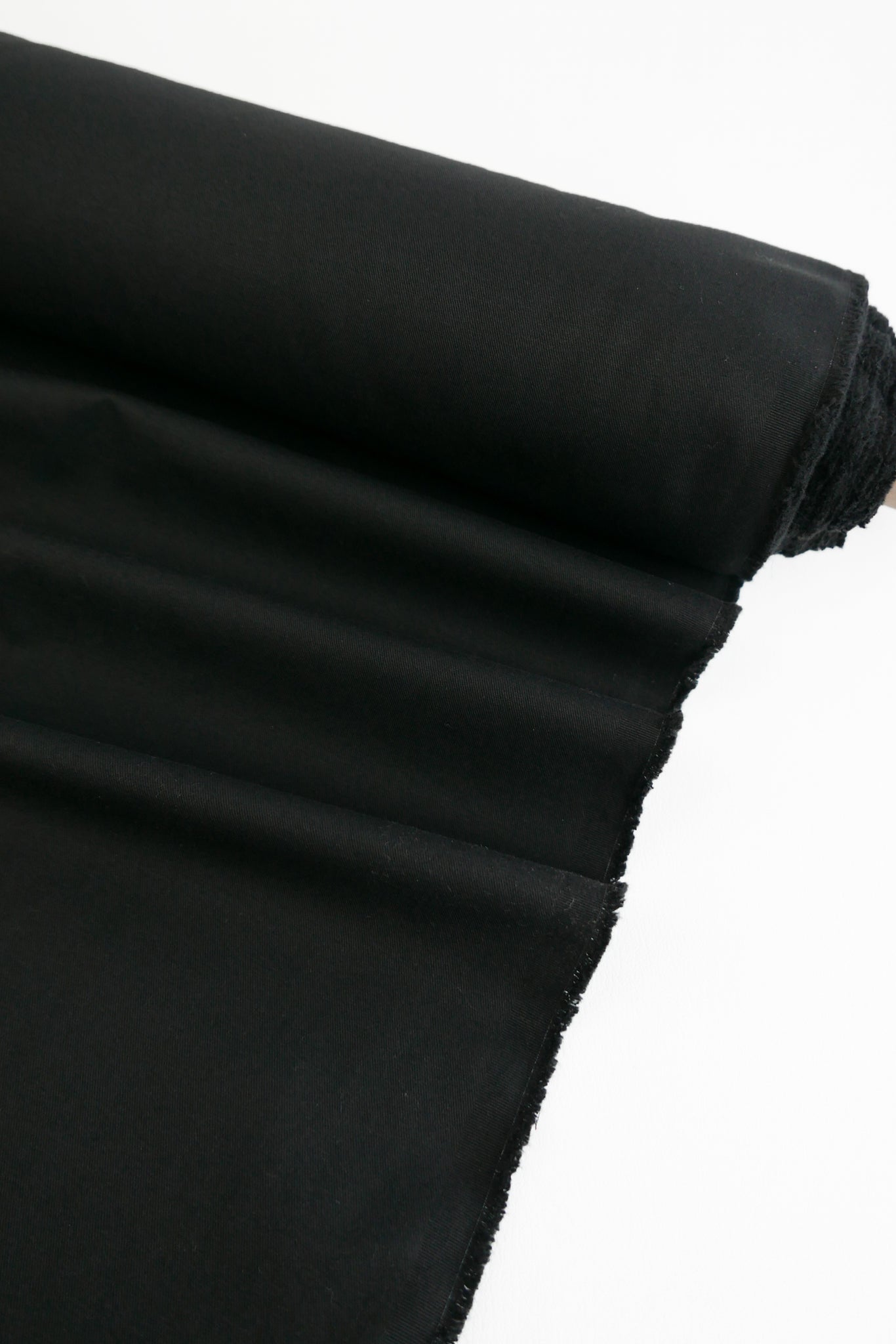 Mario is a timeless cotton drill in classic black with a mercerised finish, giving it a subtle sheen. Midweight and with good structured body, it is ideal for garments with tucks and pleats. It would make a beautiful pair of utility trousers, as well as a shirt, skirt, or dress.