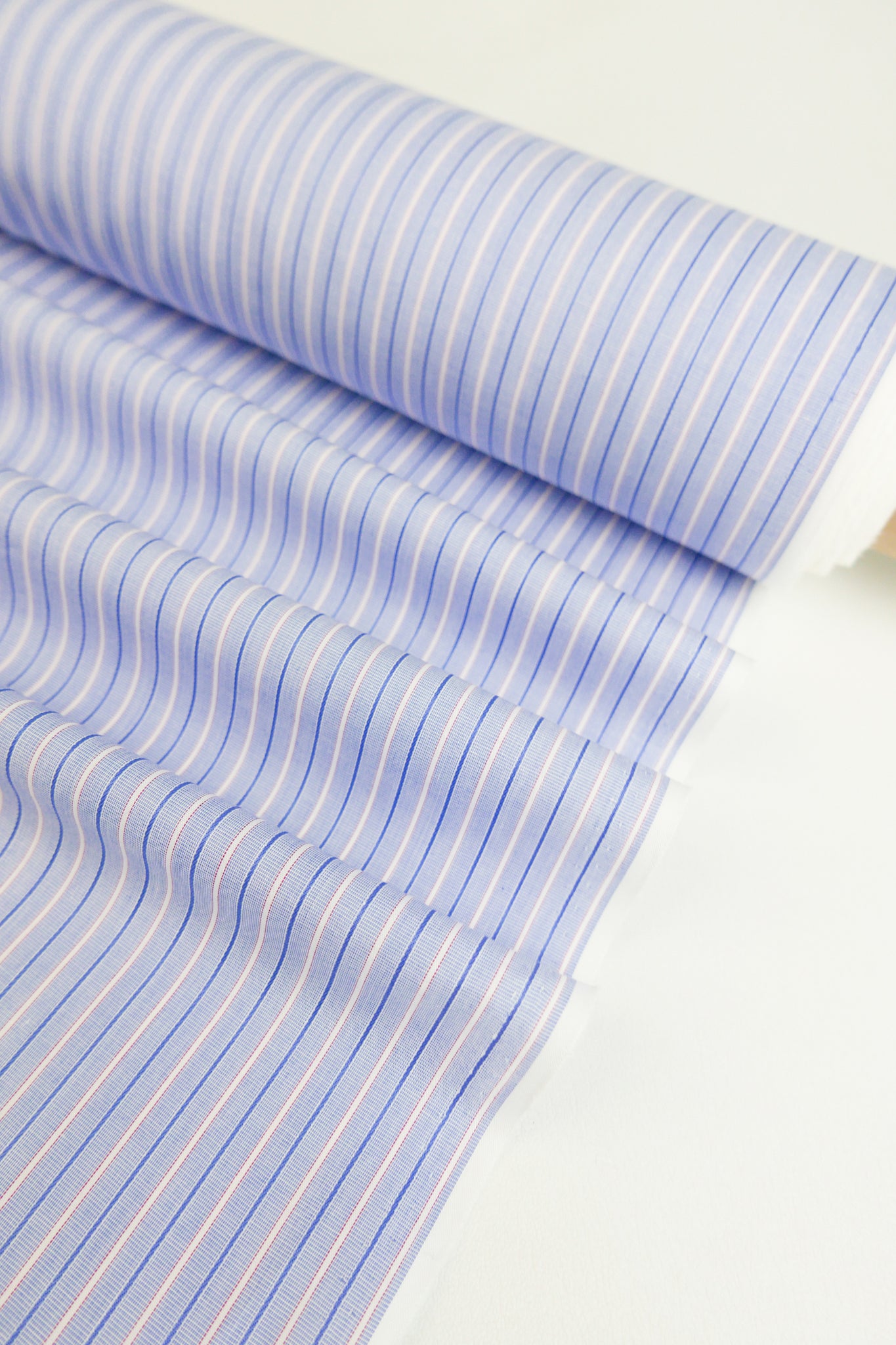 Matilda - Supima Cotton Shirting | Sky Blue Stripe