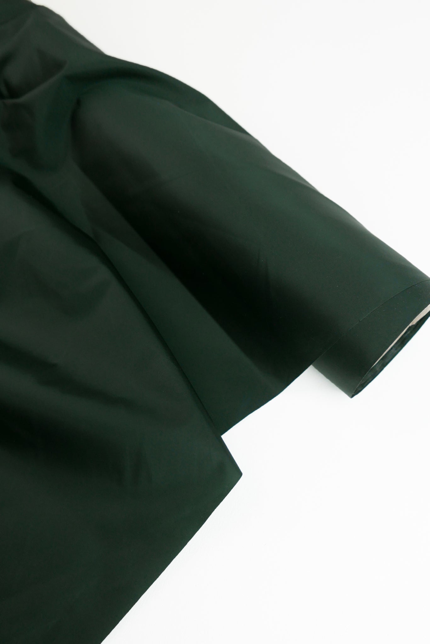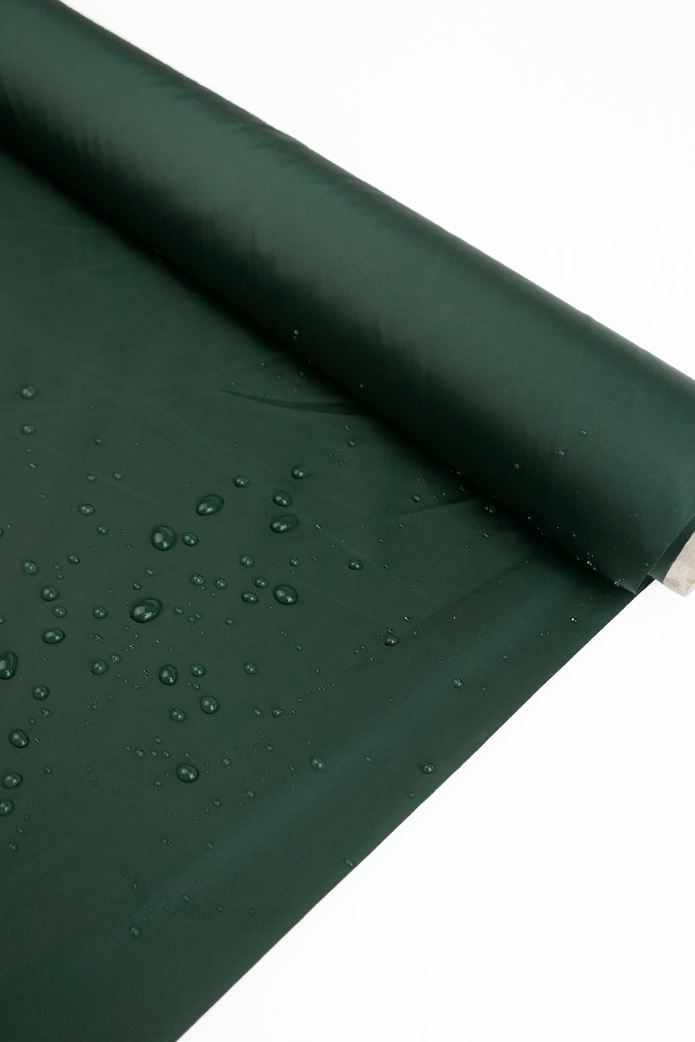 From famed Italian mill, Limonta, Trent is an innovative waterproof nylon in a deep pine green, featuring a soft, glow-like sheen. Designed for both performance and style, it offers excellent tear resistance and durability while staying lightweight and comfortable to wear. Water rolls off effortlessly, leaving no residue behind, making it ideal for unpredictable weather. Fully opaque with a clean, structured drape, it's well-suited for outerwear like trench coats, jackets, and utility pants, as well as weather-ready accessories like bags.