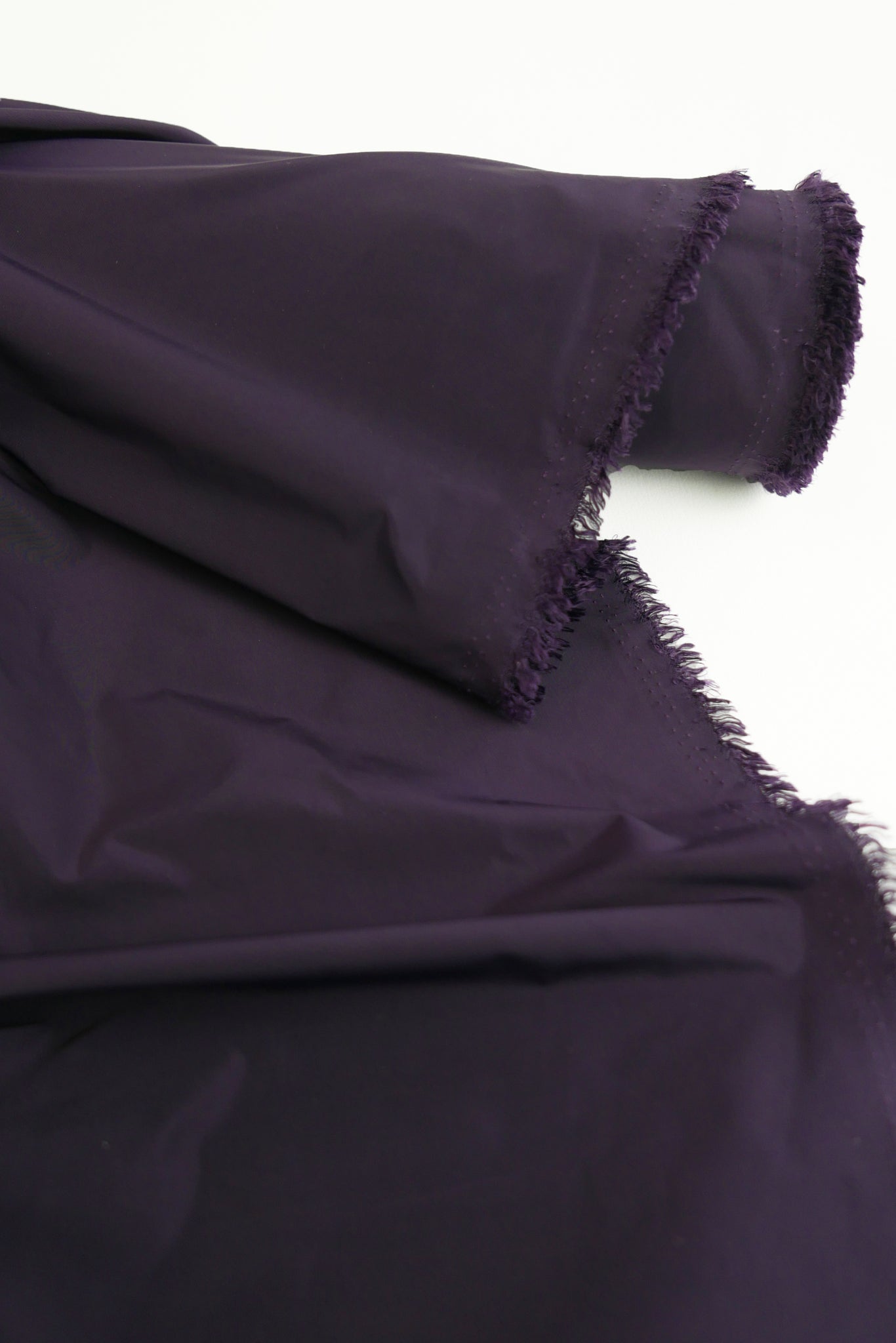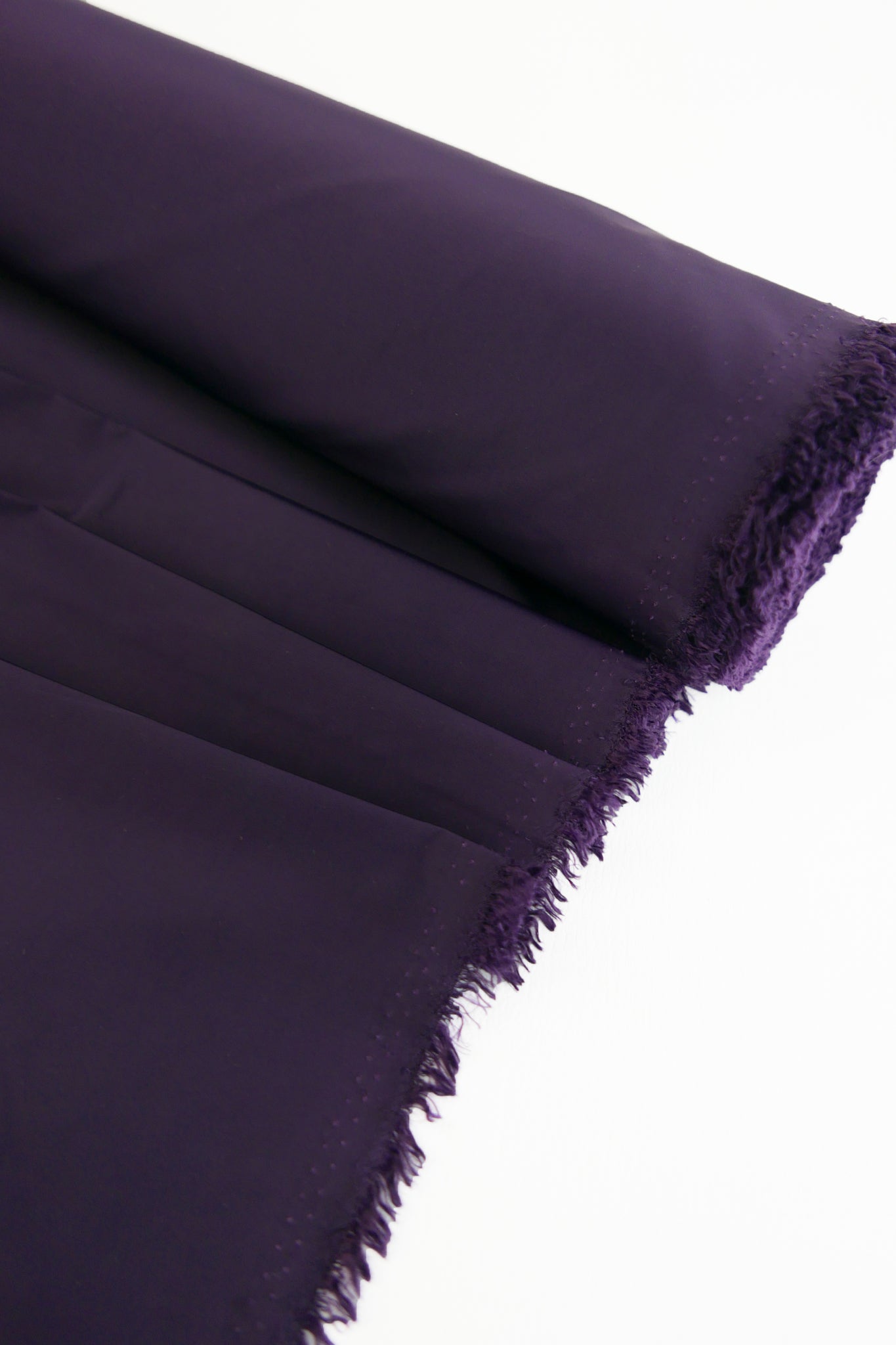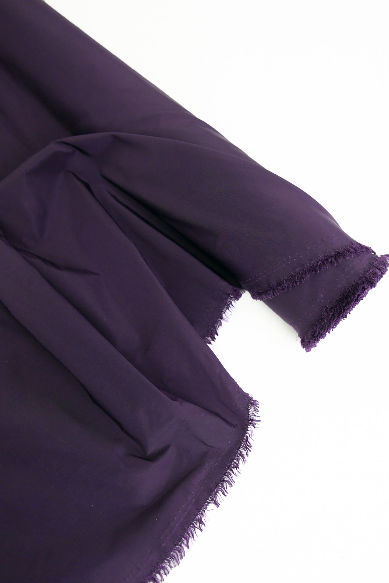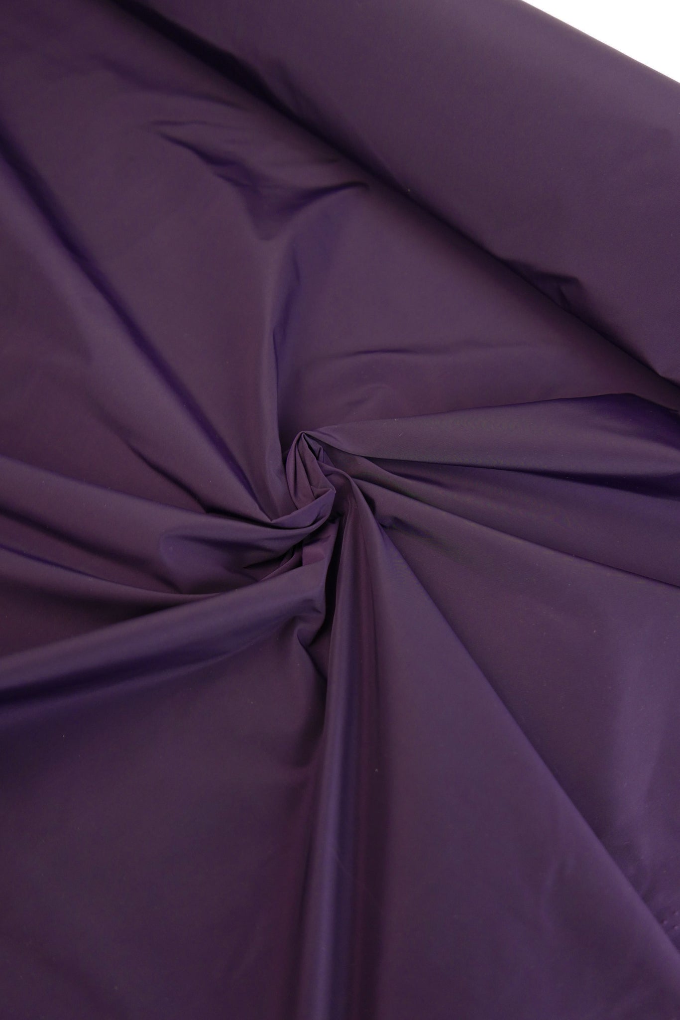 Aqua is a unique showerproof taffeta in a deep purple. Woven with a memory yarn, this fabric holds plenty of structure, folds and scrunches well, and is completely opaque. Take advantage of this matte memory yarn by creating structured pieces such as trench coats, pleated skirts, corsets or couture styles.