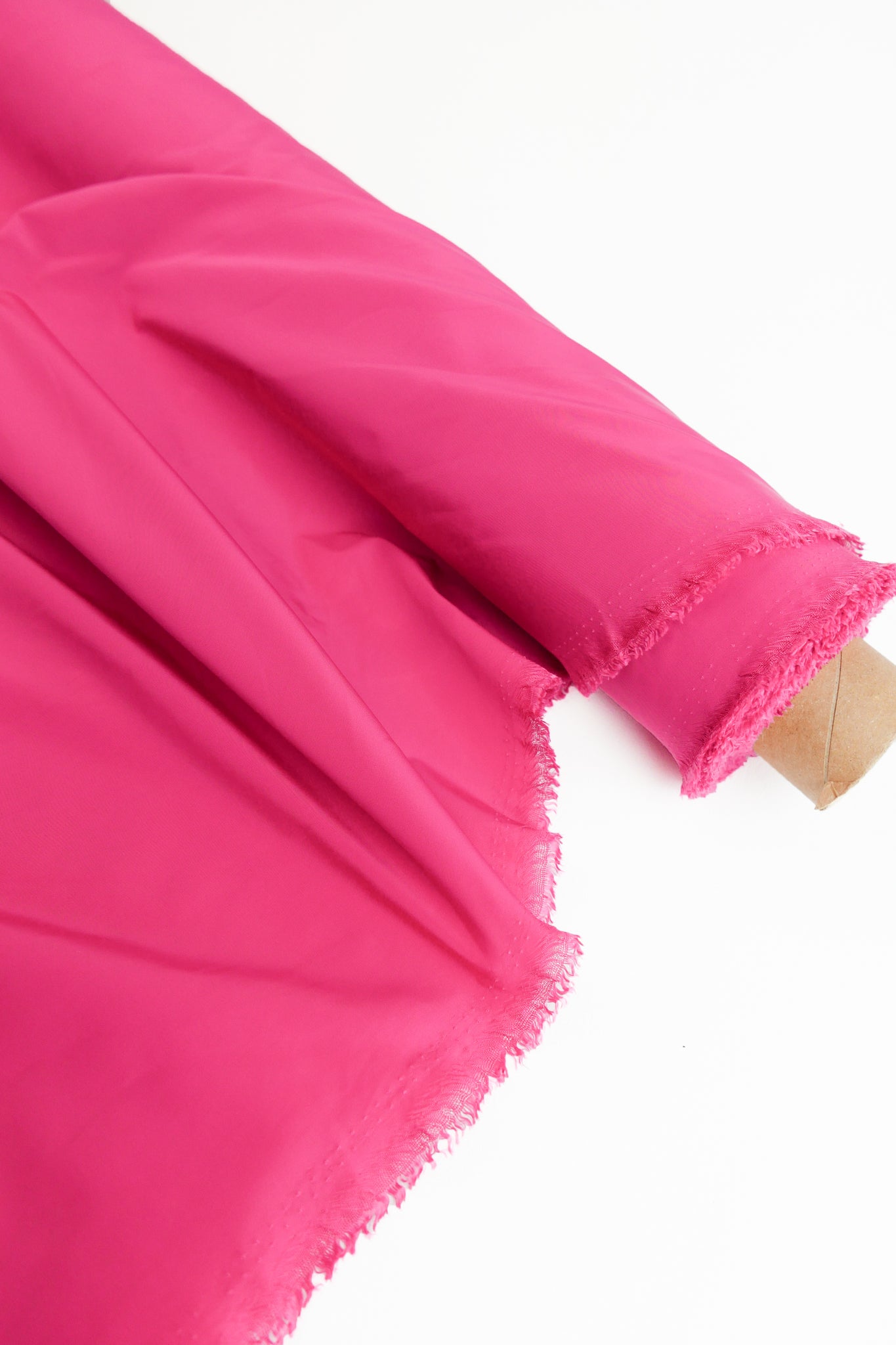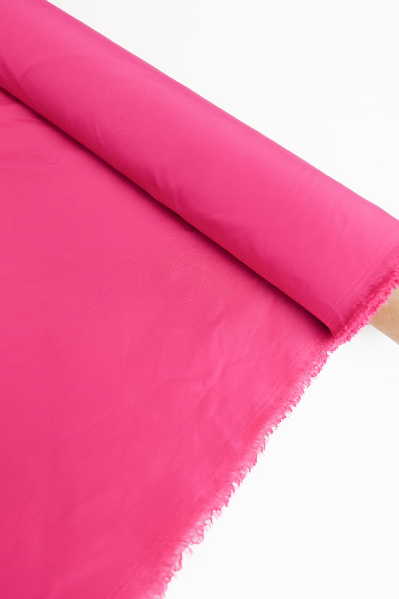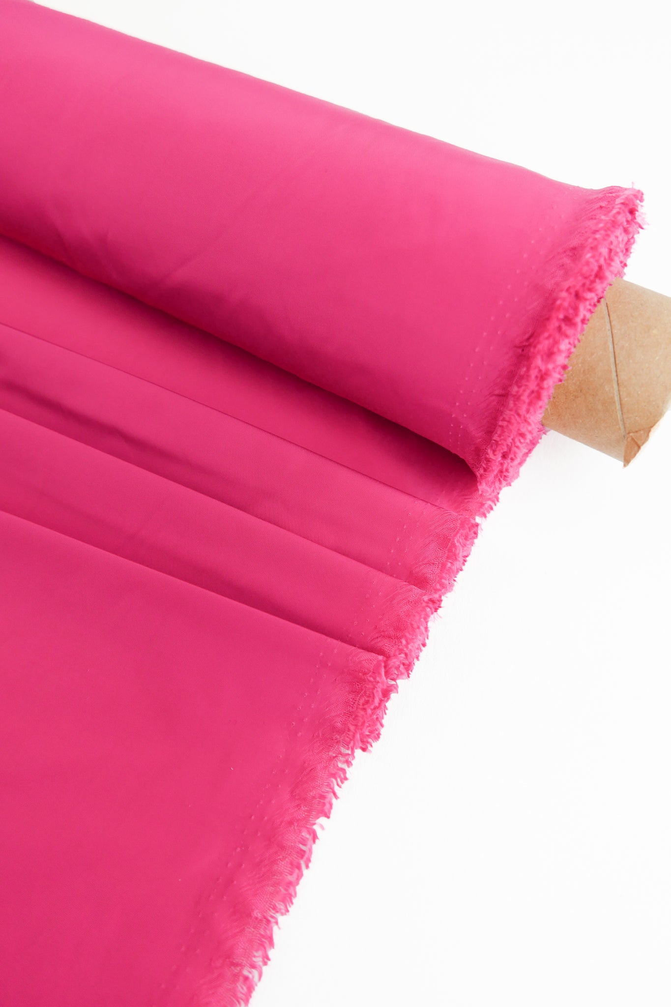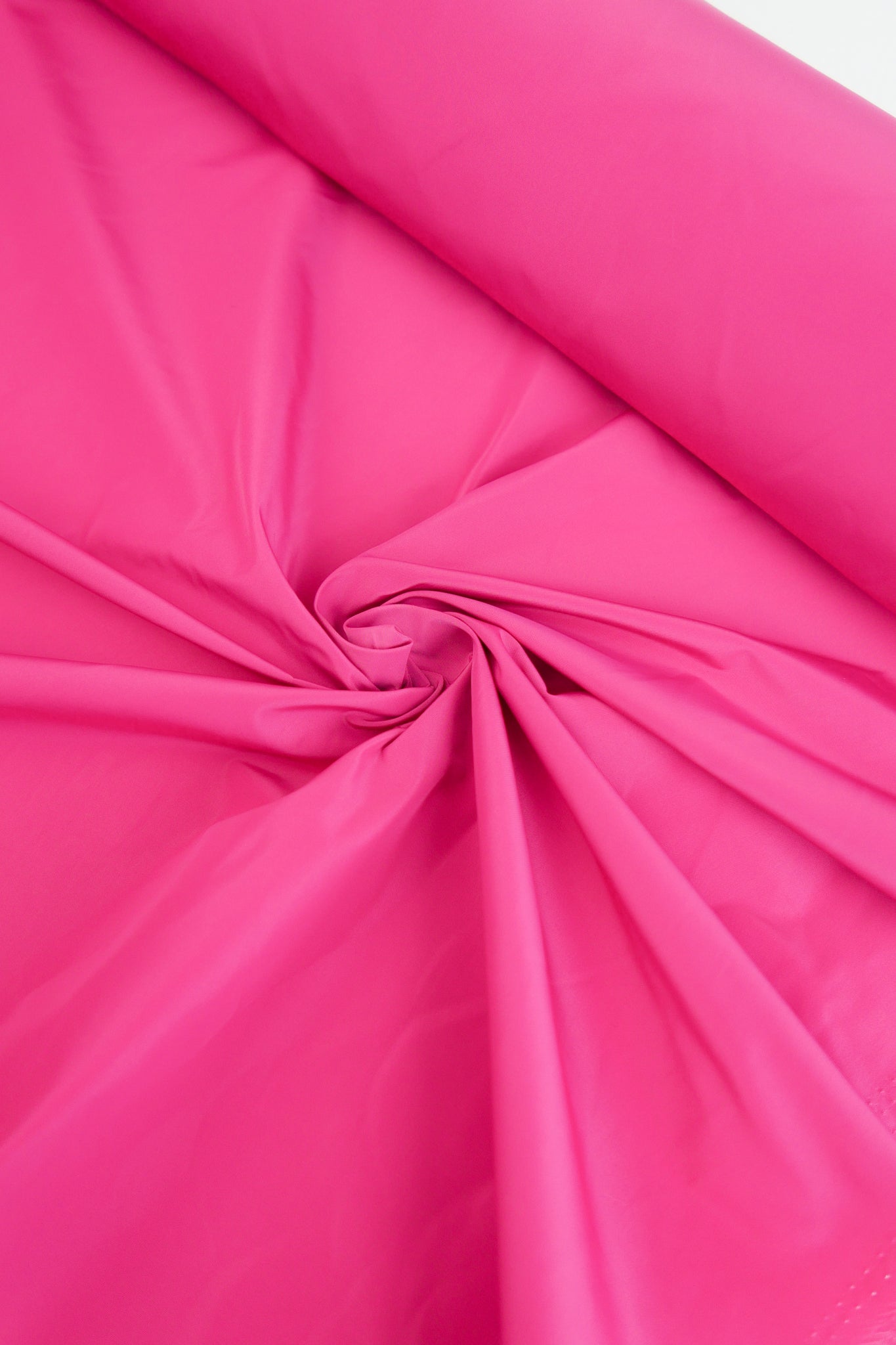 Aqua is a unique showerproof taffeta in a bright lipstick pink. Woven with a memory yarn, this fabric holds plenty of structure, folds and scrunches well, and is completely opaque. Take advantage of this matte memory yarn by creating structured pieces such as trench coats, pleated skirts, corsets or couture styles.