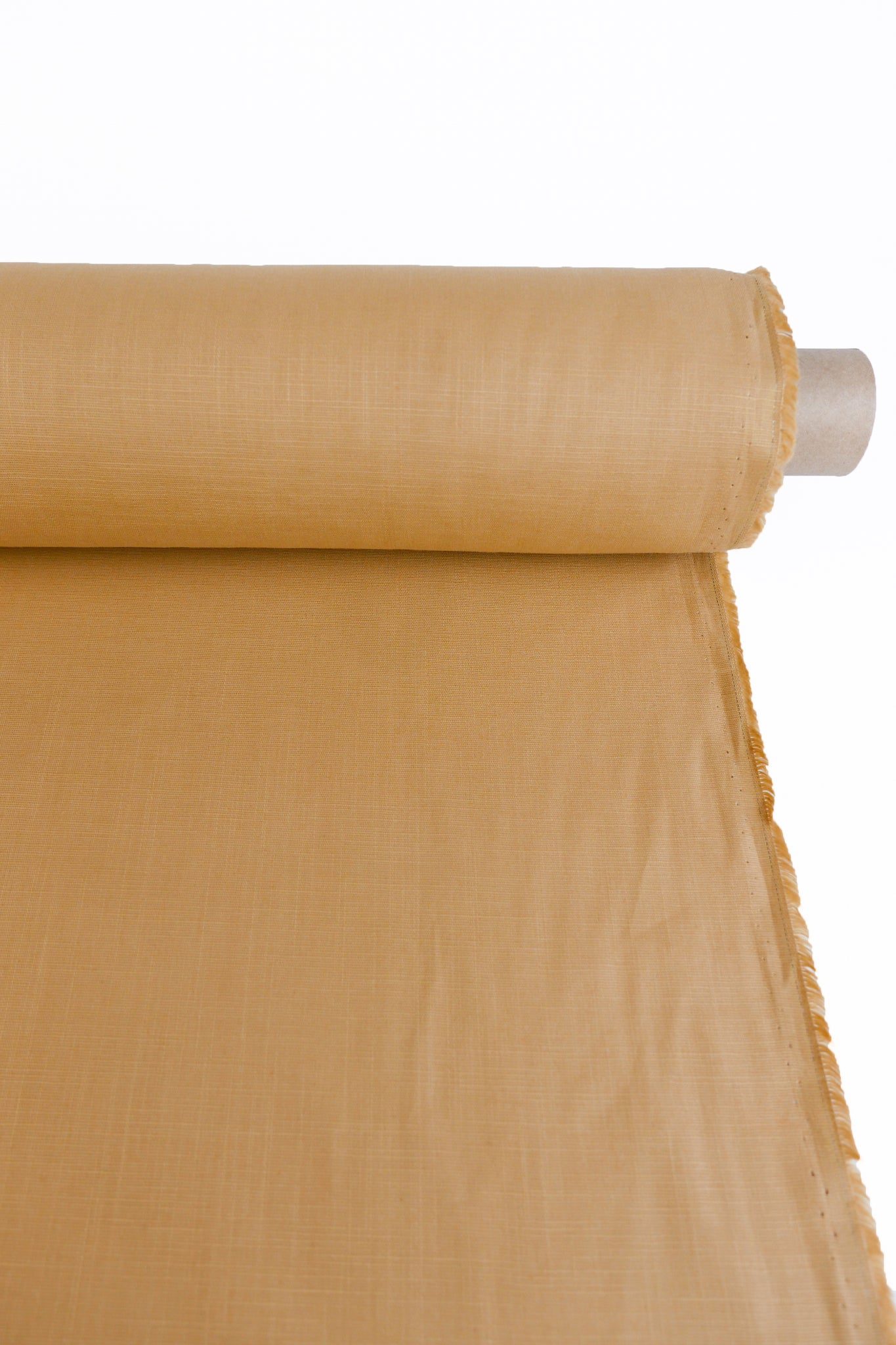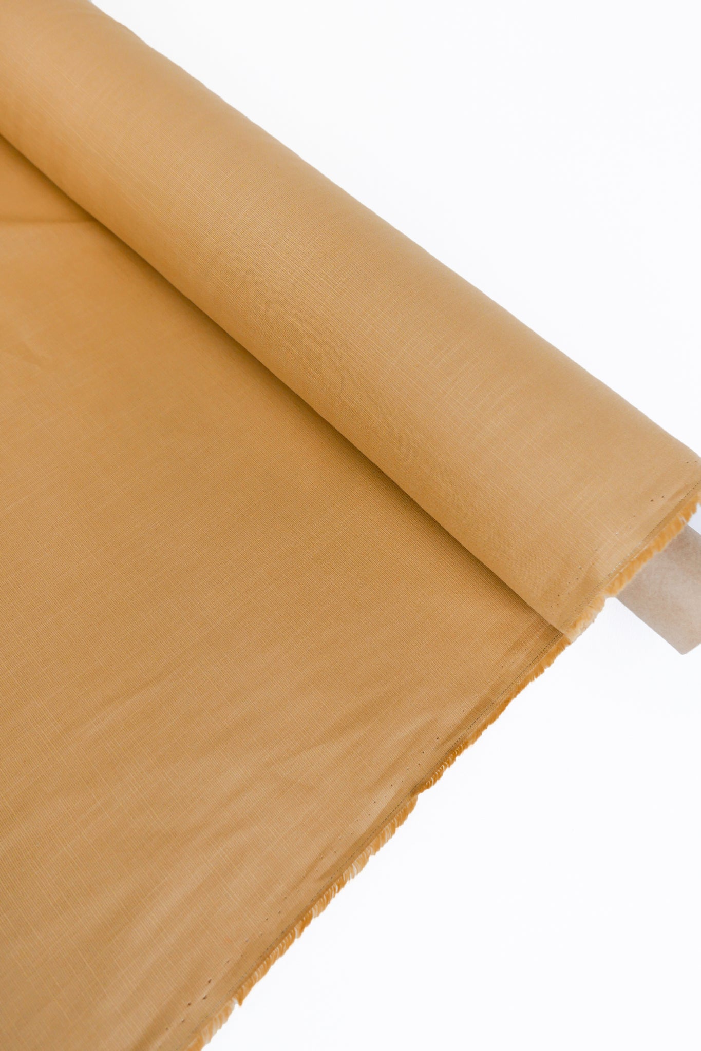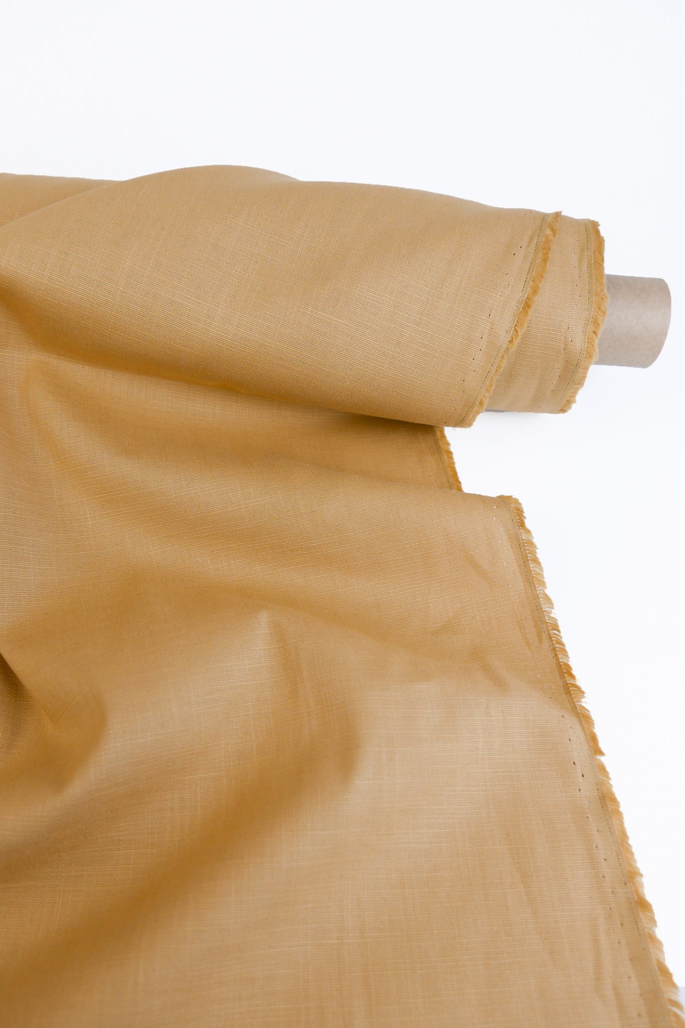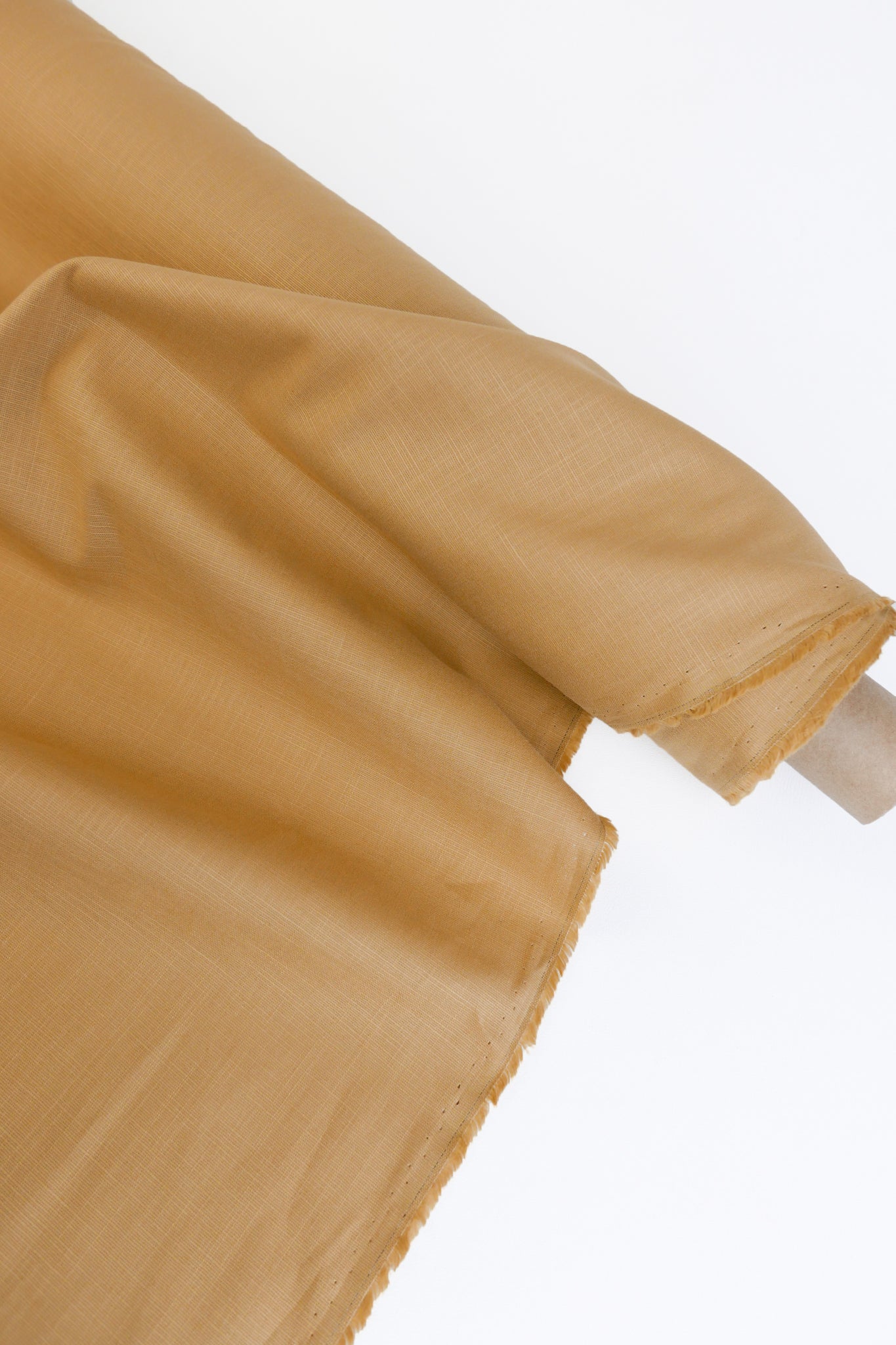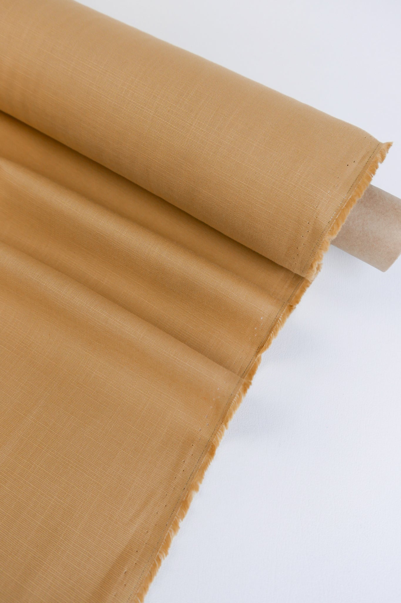 Bambi is a structured mid-weight linen in a mustard seed colourway with a crosshatch weave. It has a small lycra content giving it a slight stretch, and an opulent, buttery soft hand feel. Mostly opaque, Bambi is waiting to be made into a striking linen suit, dress or everyday wide-leg trousers.