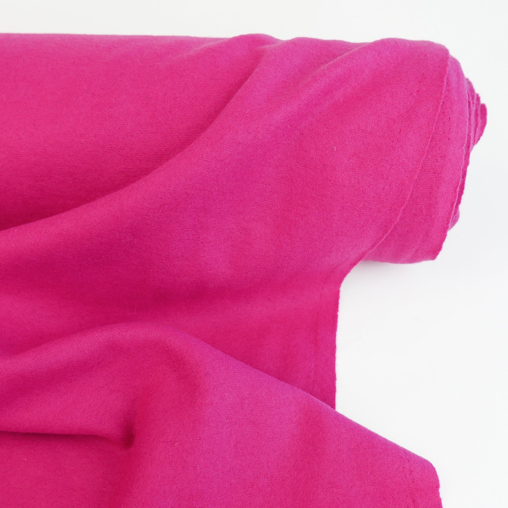 Bethany is a lovely midweight boiled wool coming in lipstick pink. It has a tight-knit weave and mechanical stretch, giving it plenty of body and a beautiful, structured drape. It has a fine finish, and being boiled is also moisture-wicking and odour-free. Bethany is ideal for unlined draped jackets, cardigans, wrap coats, trans-seasonal layering pieces, or babywear.