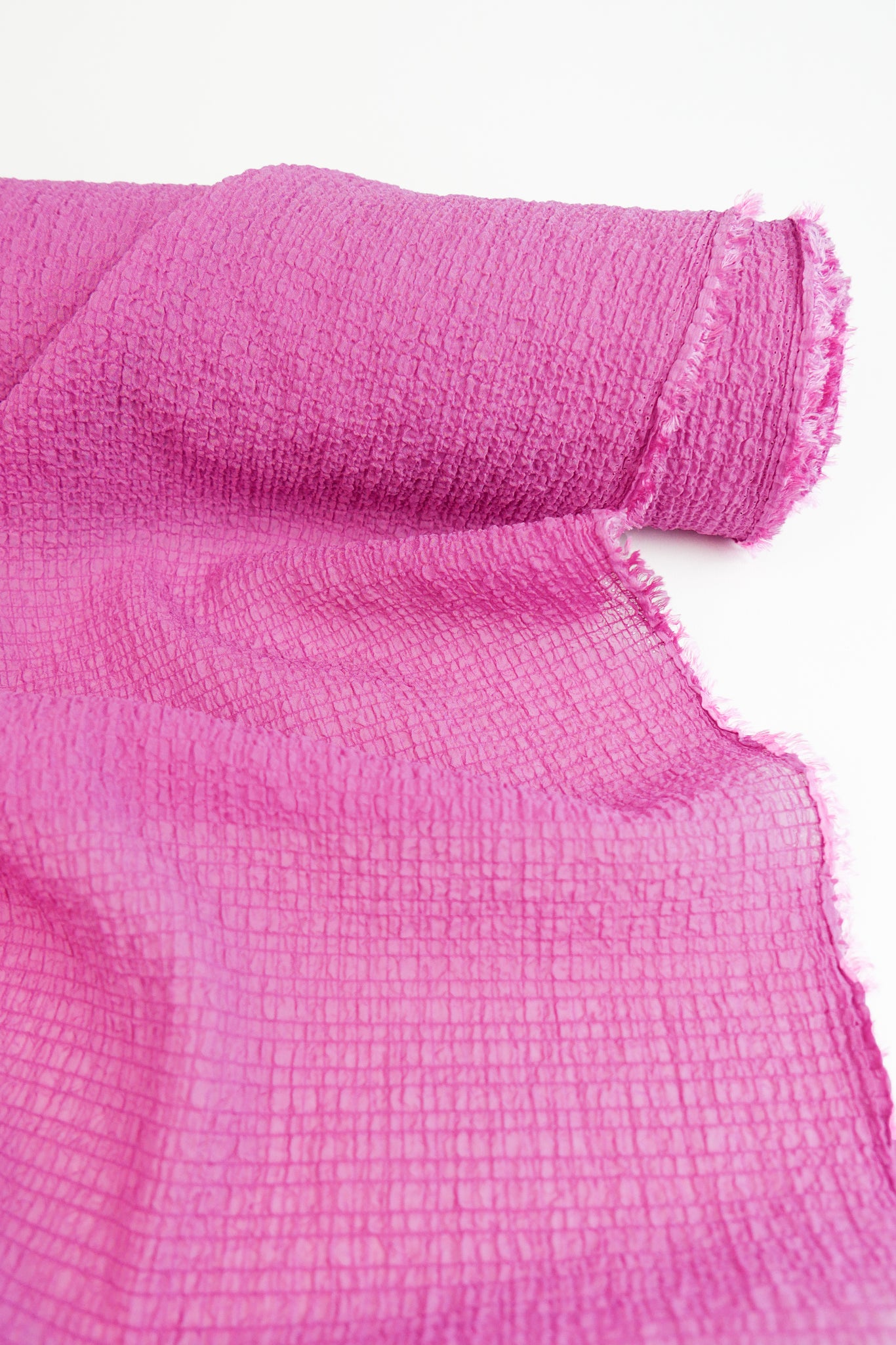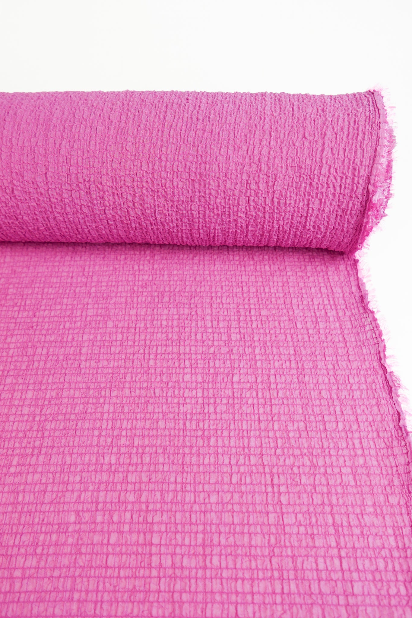 For the fabric collector, this is a truly rare and unique textile. Also known as popcorn knit, Bubble Knit is a uniquely textured fabric coming in five delicious colourways. Semi-opaque and lightweight, it has a beautifully tactile handle and slight two-way stretch for added comfort. Make chic, Issey Miyake-inspired dresses, tops and other show-stopping pieces.