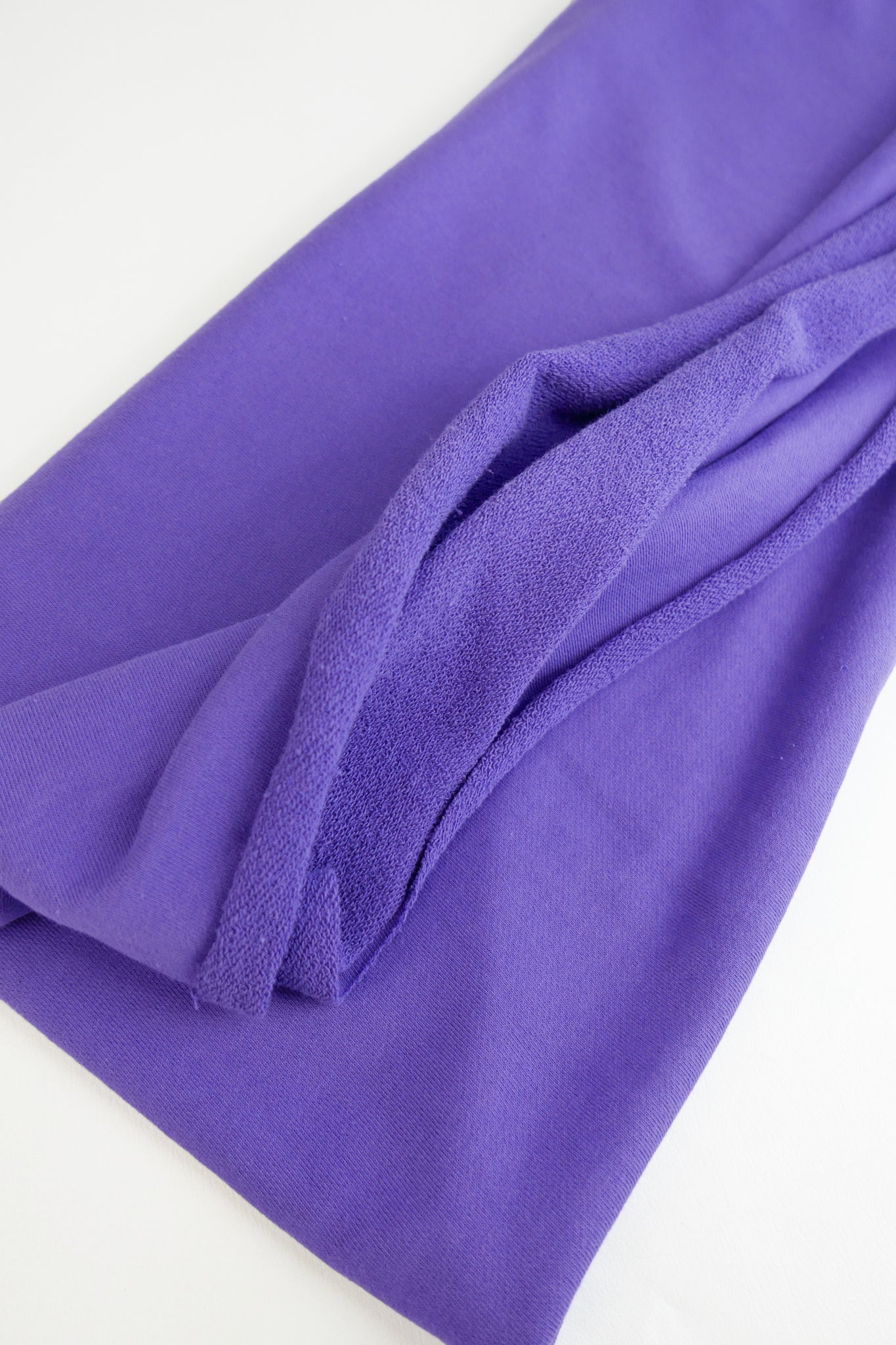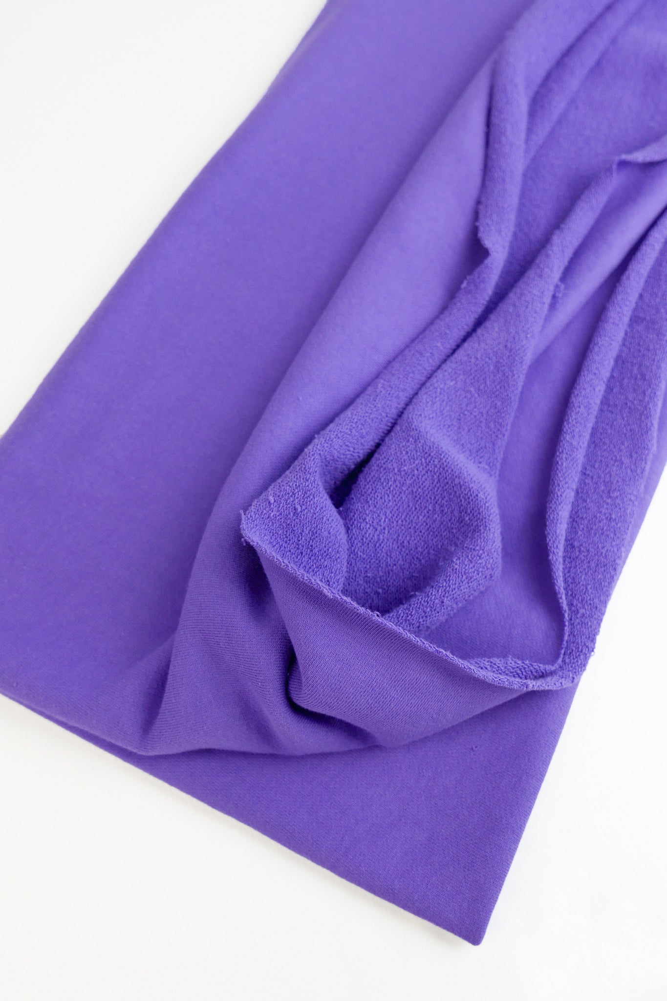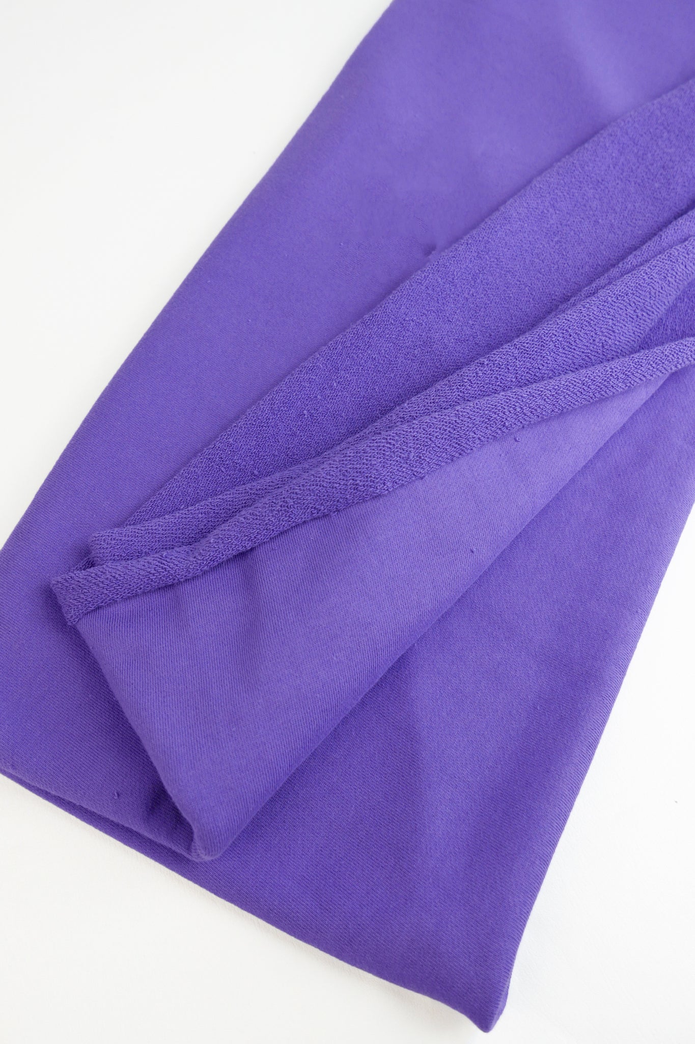 Our French Terry is a cosy midweight classic sweatshirting knit in passionflower with a loopback texture on the reverse side, and a superior soft ribbed texture on the right side. To top it off, this knit's generous width makes it a no-brainer for any project.