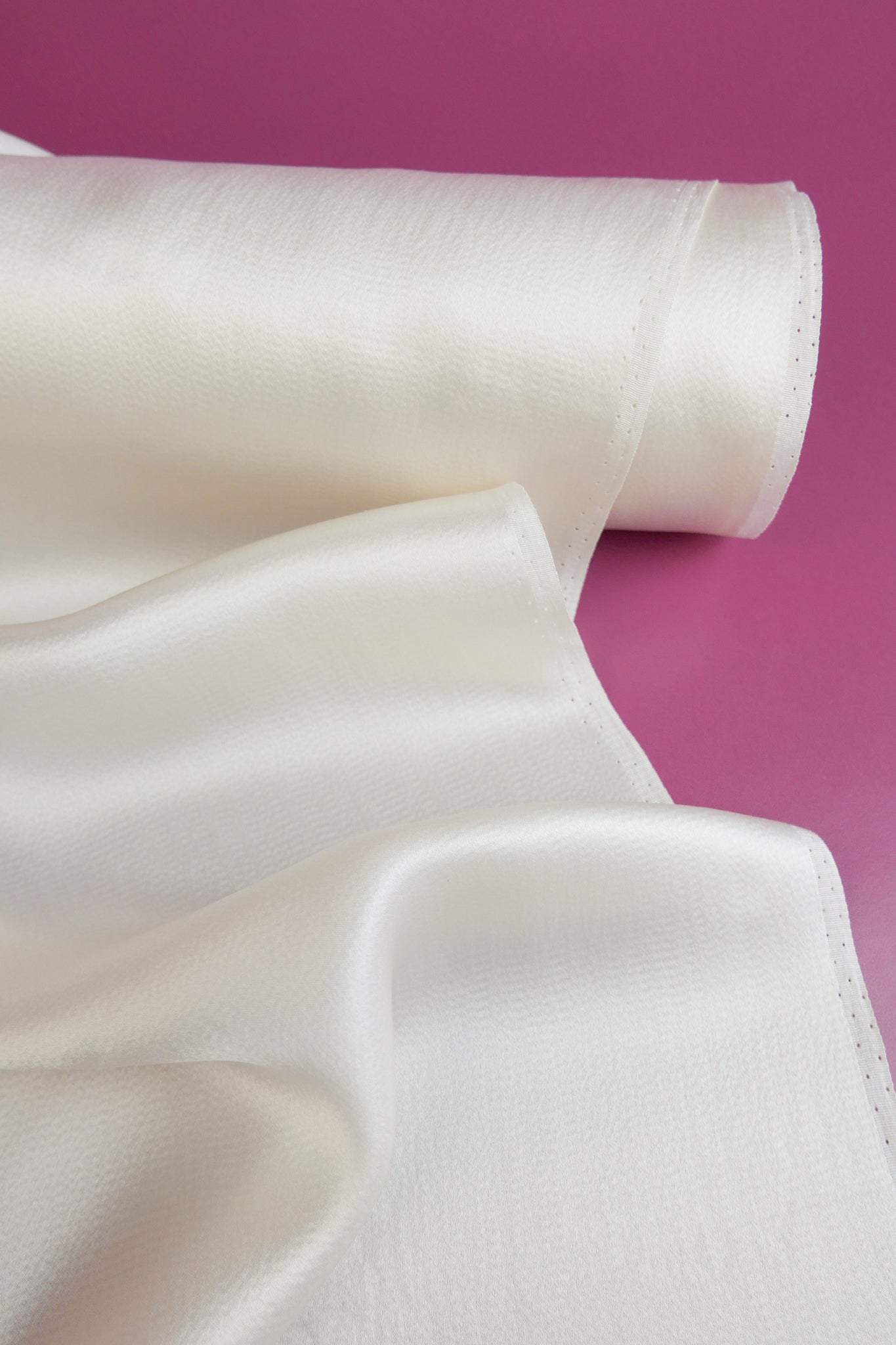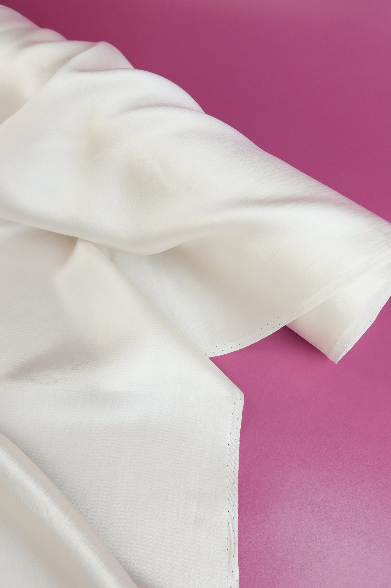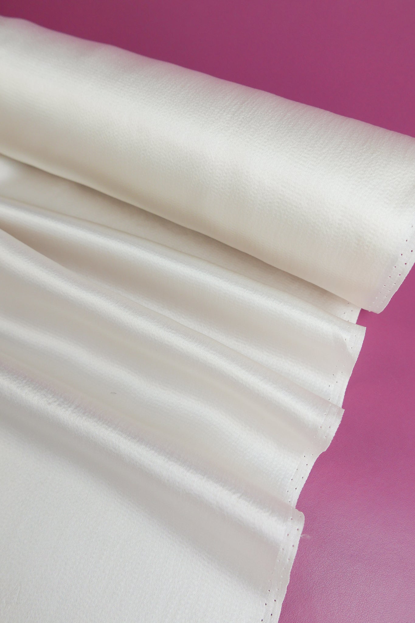 This is a beautifully textured, hammered silk satin in a timeless pearl off-white. With its elegant drape and soft, buttery finish, it’s ideal for special occasion pieces or adding a touch of glamour to your everyday wardrobe.