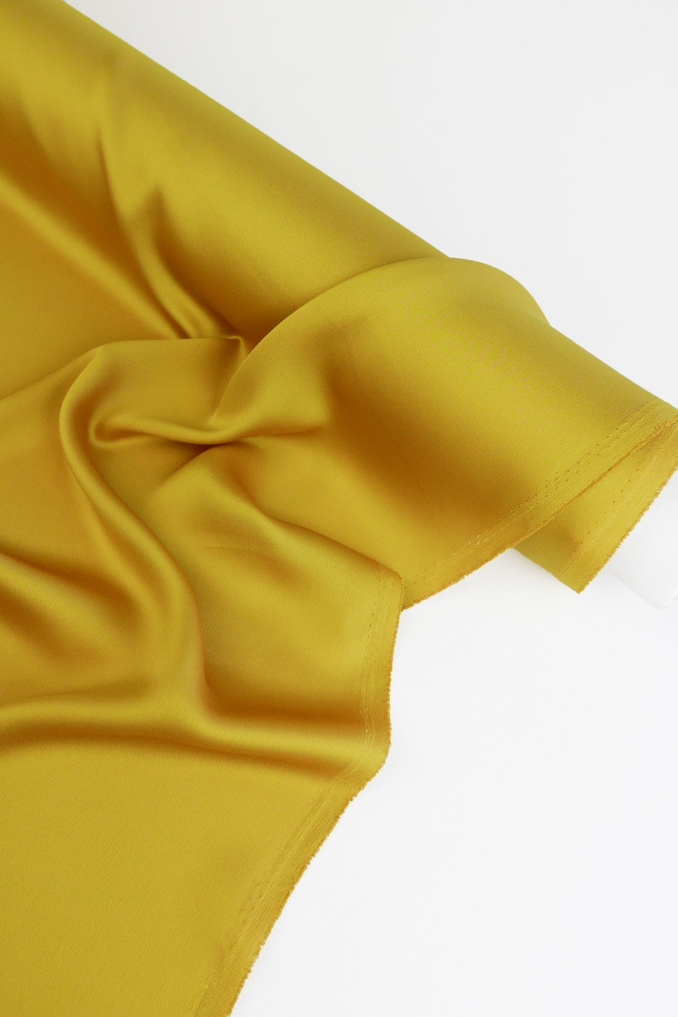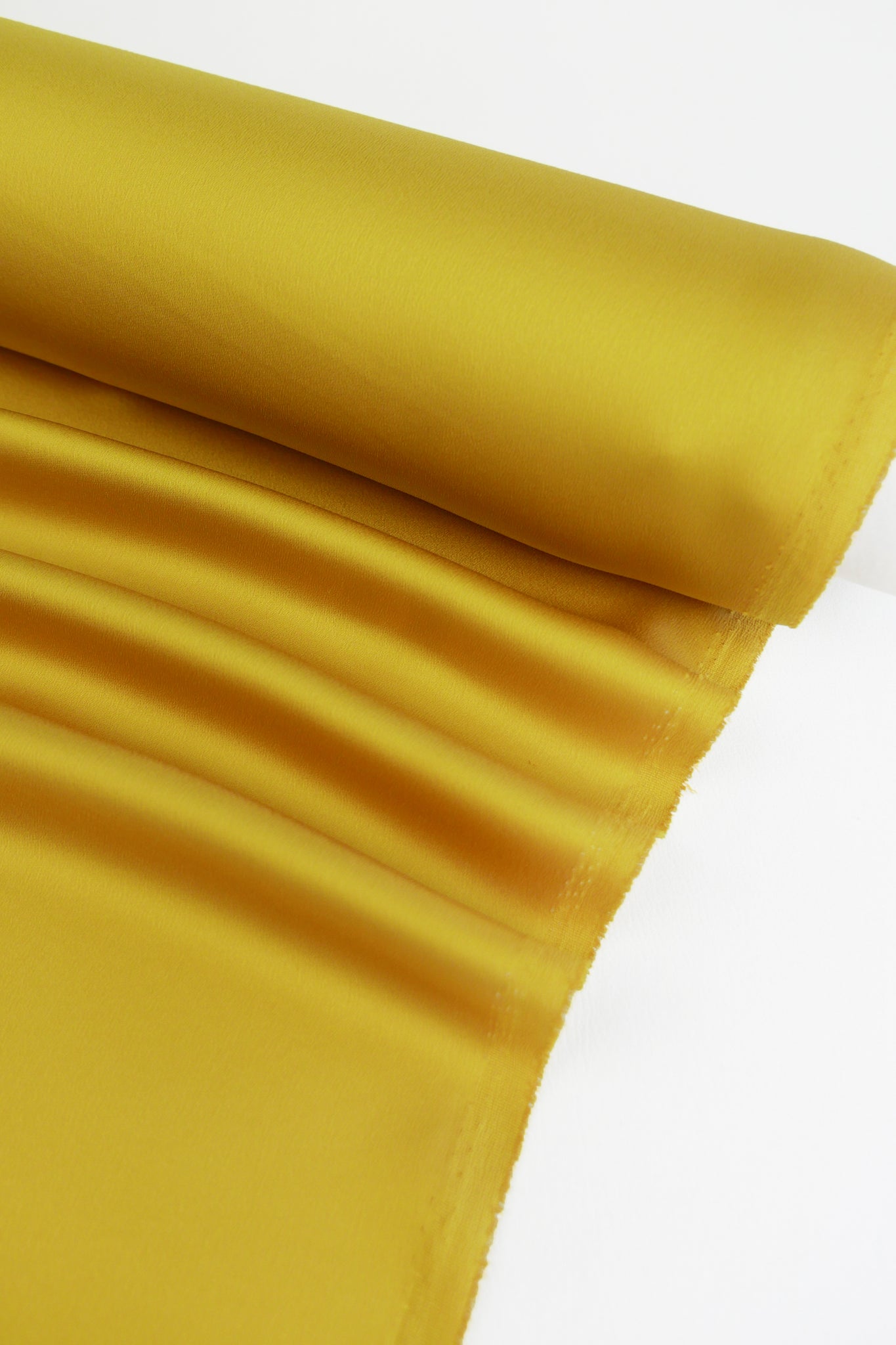 Liquid satin is a beautiful satin finish polyester that handles and drapes just like silk satin. It's incredibly versatile, with mechanical stretch and being wide width, can be cut on the bias, making it suitable for evening dresses, tops, pants, or even statement blazers.