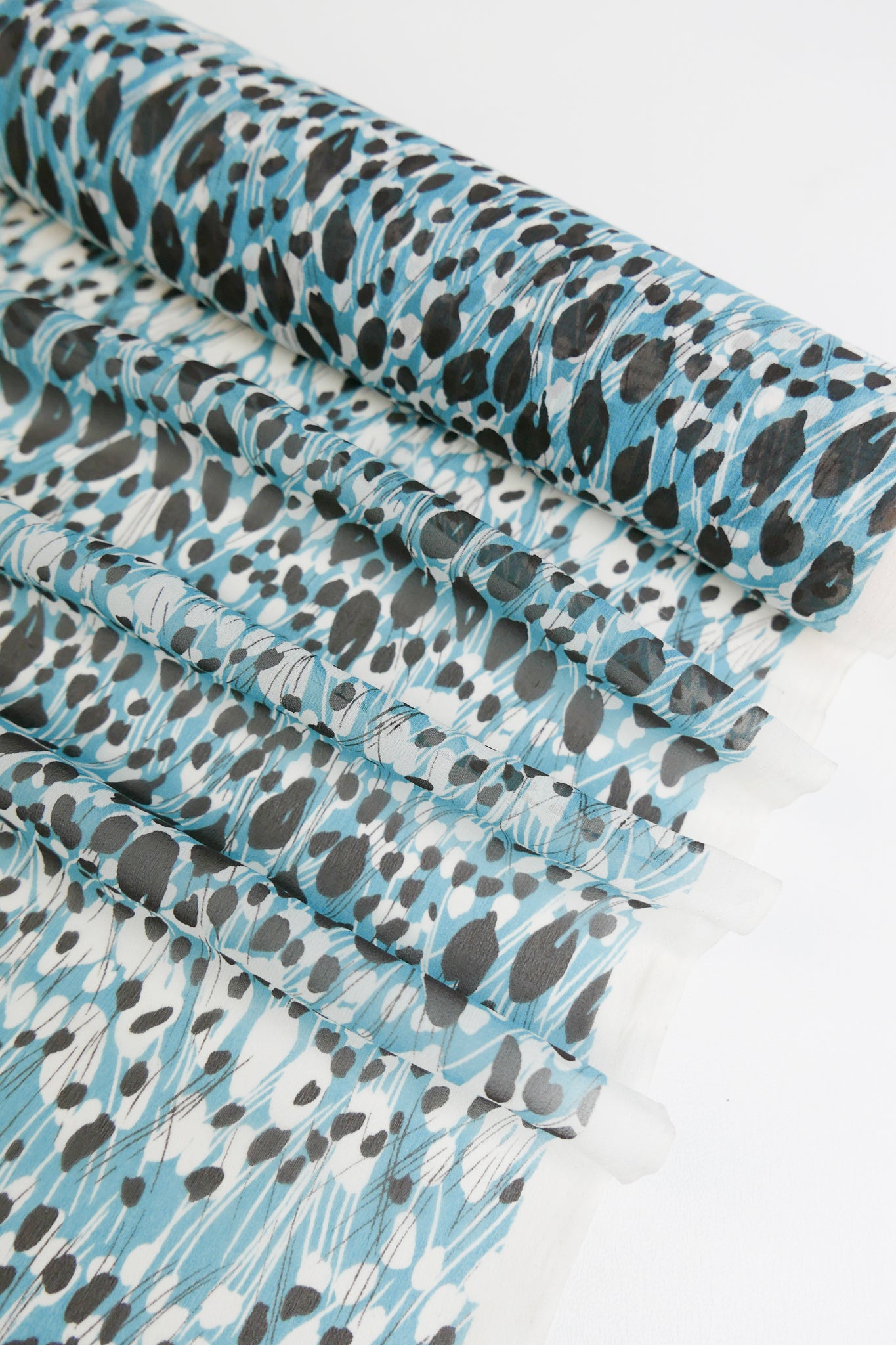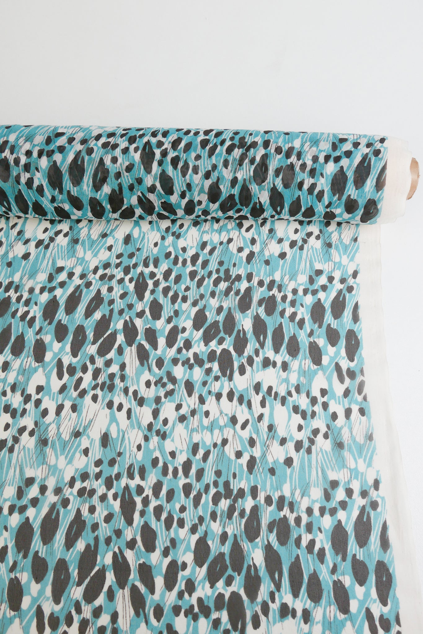 This beautiful silk georgette is super fine and delicate, and comes in a soft teal colourway with a spot print. Lightweight, super floaty and sheer, it's the perfect blouse weight, or line your summer skirts and dresses for a super luxe feel.