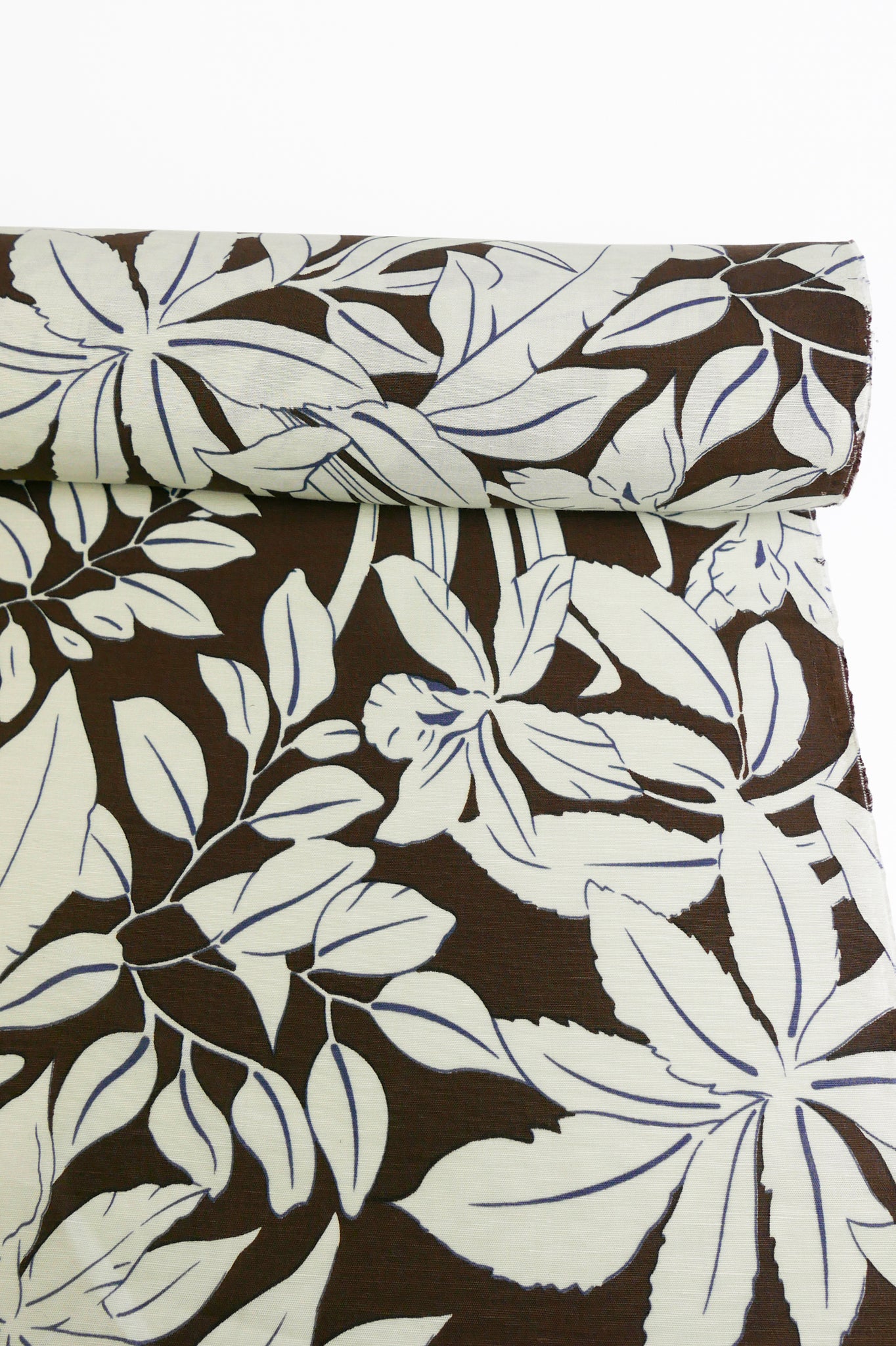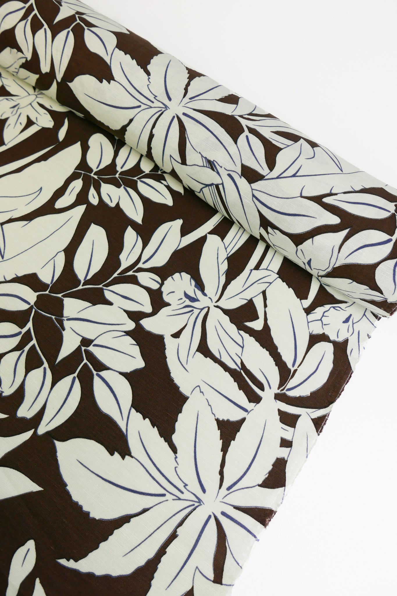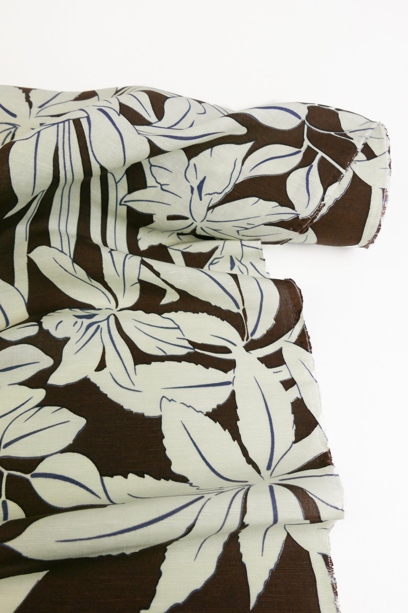 This is a silk linen blend featuring a floral print in a pale mint green on a cacao coloured base cloth with a slubbed texture. The combination of silk's natural lustre and smoothness with linen's breathable structure gives this fabric a refined, elevated feel. With a soft hand, shirting-weight drape, it holds its shape beautifully while remaining comfortable to wear. Midweight and totally opaque, it would make a fabulous shirt, dress, or skirt.